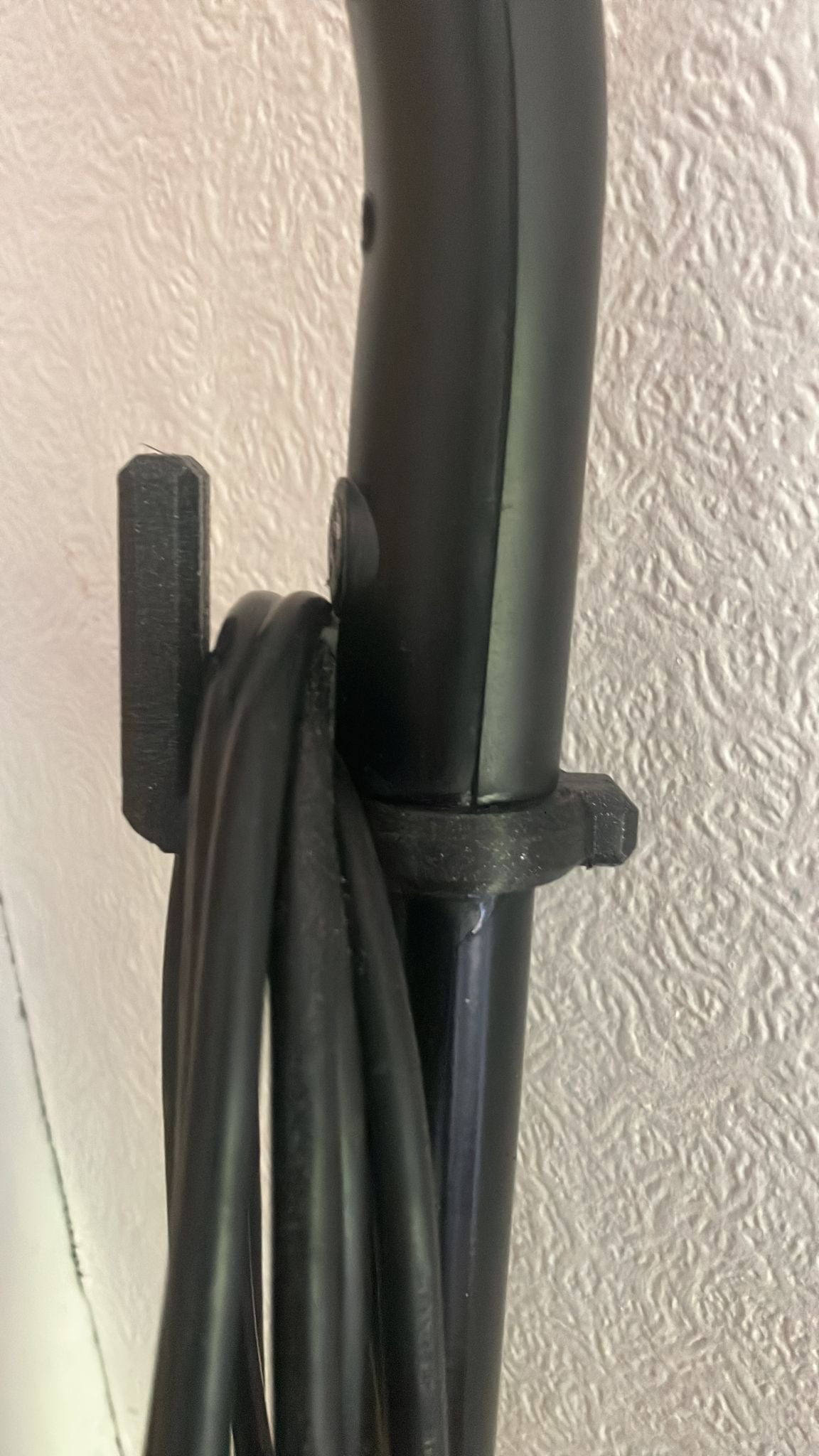 Ο γάντζος αναπτύχθηκε αρχικά ως αντικατάσταση ενός ελαττωματικού εξαρτήματος σε μια σφουγγαρίστρα ατμού, αλλά η ευελιξία του σημαίνει ότι μπορεί να χρησιμοποιηθεί σε ένα ευρύ φάσμα συσκευών με διάμετρο σωλήνα περίπου 25 mm. Παρόλο που έχει σχεδιαστεί για αυτό το τυπικό μέγεθος, το μοντέλο μπορεί εύκολα να προσαρμοστεί σε άλλες διαστάσεις, όπως απαιτείται. Η στερέωση γίνεται με μια στιβαρή μέθοδο που βασίζεται στην κόλλα, η οποία εξασφαλίζει μια ανθεκτική και αξιόπιστη τοποθέτηση που συγκρατεί με ασφάλεια το καλώδιό σας στη θέση του.