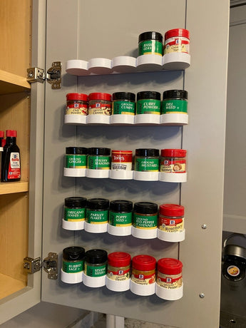 Απελευθερώστε πολύτιμο χώρο στα ντουλάπια της κουζίνας σας και στον πάγκο της κουζίνας με αυτό το έξυπνο ράφι μπαχαρικών McCormick. Σχεδιασμένο για να χωράει έως και πέντε γυάλες μπαχαρικών, όπως αυτές από την McCormick ή παρόμοια μεγέθη, αυτή η λύση εξασφαλίζει οργανωμένη και εύκολα προσβάσιμη αποθήκευση των μπαχαρικών που χρησιμοποιείτε περισσότερο. Το ράφι μπαχαρικών τοποθετείται εύκολα στο εσωτερικό μιας πόρτας ντουλαπιού χρησιμοποιώντας ταινία διπλής όψης, δίνοντάς σας γρήγορη πρόσβαση στα αρώματά σας χωρίς να καταλαμβάνετε περιττό χώρο. Αυτή η αποτελεσματική αποθήκευση μπαχαρικών είναι ιδανική για τη δημιουργία μιας πιο βελτιωμένης και λειτουργικής κουζίνας.
