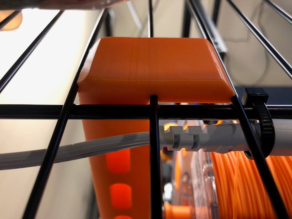 Η εγκατάσταση είναι απλή. κουμπώνει εύκολα στο συρμάτινο ράφι και σπρώχνεται στη θέση του, απελευθερώνοντας πολύτιμο χώρο στον χώρο εργασίας σας. Η τοποθέτηση του καρουλιού είναι συχνά βέλτιστη για δημοφιλείς εκτυπωτές όπως το Ender 3, αλλά μπορεί να ποικίλλει ώστε να ταιριάζει με τη συγκεκριμένη ρύθμιση εκτυπωτή και ραφιού. Αυτή η λύση προσφέρει έναν οργανωμένο και αποτελεσματικό τρόπο αποθήκευσης και χρήσης του νήματος σας, συμβάλλοντας σε ένα πιο τακτοποιημένο και λειτουργικό περιβάλλον τρισδιάστατου εκτυπωτή.