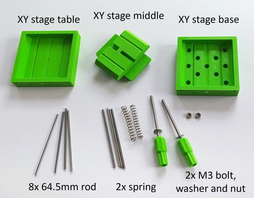 Η διπλής άξονας γραμμική σκηνή παρέχει μια εντυπωσιακή ακρίβεια τοποθέτησης περίπου 10 μικρομέτρων. Αυτή η ανθεκτική δομή, που συνδυάζει τμήματα που εκτυπώνονται σε 3D με ράβδους μετάλλου 2 mm και δύο ελατήρια, αναδεικνύει έναν αποτελεσματικό σχεδιασμό που μπορεί να χρησιμοποιηθεί σε διάφορα έργα ακρίβειας.