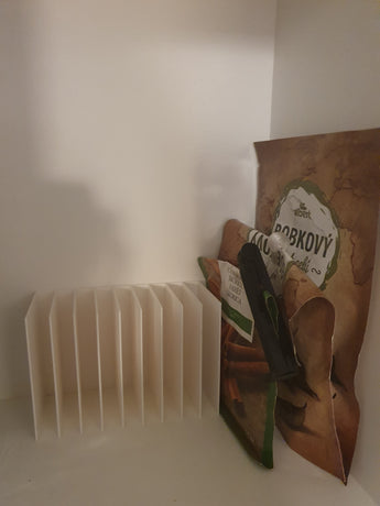 Αυτός ο διοργανωτής έχει σχεδιαστεί για να διατηρεί αποτελεσματικά τα φακελάκια μπαχαρικών σας συγκεντρωμένα και εύκολα προσβάσιμα στην κουζίνα. Με μέγεθος 157x50x74mm, χωράει εύκολα στα περισσότερα συρτάρια ή ντουλάπια και βοηθά στη δημιουργία μιας επισκόπησης των μπαχαρικών σας. Οι αποστάσεις των 11 mm μεταξύ των θαλάμων διασφαλίζουν ότι κάθε σακούλα έχει τη δική της θέση, γεγονός που απλοποιεί την επιλογή κατά το μαγείρεμα και μειώνει την ακαταστασία. Ο διοργανωτής μπορεί επίσης να στερεωθεί εύκολα με ταινία διπλής όψης για μεγαλύτερη σταθερότητα, εάν το επιθυμείτε, συμβάλλοντας σε έναν πιο οργανωμένο και λειτουργικό χώρο κουζίνας.