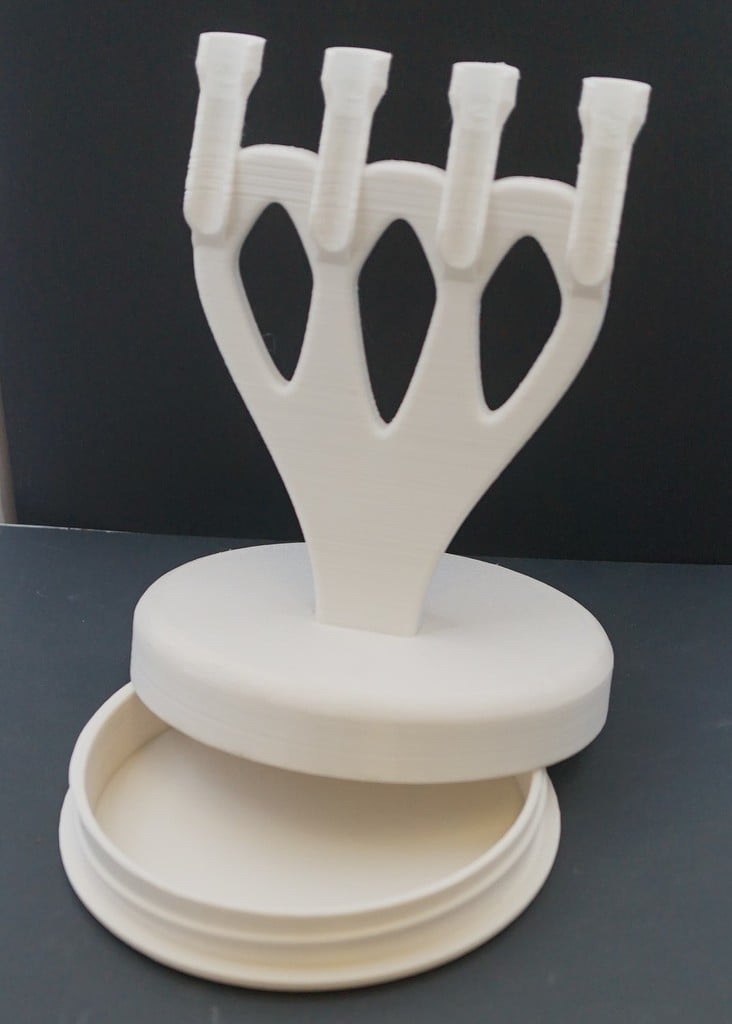 Η θήκη μπορεί να προσαρτηθεί εύκολα σε μια μεταλλική πλάκα με βίδα M3, επιτρέποντάς σας να προσαρμόσετε τη ρύθμισή σας ανάλογα με τις ανάγκες. Η ενσωματωμένη βάση μπορεί να εκτυπωθεί σε δύο μέρη, ώστε να μπορείτε να τη γεμίσετε με άμμο ή άλλο υλικό για να αυξήσετε τη σταθερότητα, καθιστώντας την μια ευέλικτη και χρήσιμη λύση για εργαστηριακή χρήση.