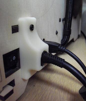 Αυτό το στήριγμα στήριξης καλωδίου ρεύματος έχει αναπτυχθεί ειδικά για τον τρισδιάστατο εκτυπωτή Replicator για να βελτιστοποιήσει τη λειτουργικότητα και την αντοχή του. Το στήριγμα εγκαθίσταται στο πίσω μέρος του εκτυπωτή και παρέχει στιβαρή υποστήριξη στο καλώδιο τροφοδοσίας όπου συνδέεται. Απαλλάσσοντας το βάρος του καλωδίου, αυτή η έξυπνη θήκη καλωδίου μειώνει την καθημερινή καταπόνηση τόσο στο βύσμα του καλωδίου όσο και στην είσοδο του εκτυπωτή. Αυτό είναι ζωτικής σημασίας για την ελαχιστοποίηση της φθοράς και την αποτροπή πιθανών ζημιών που μπορεί να προκύψουν με την πάροδο του χρόνου με επαναλαμβανόμενη κίνηση ή έλξη στο καλώδιο.