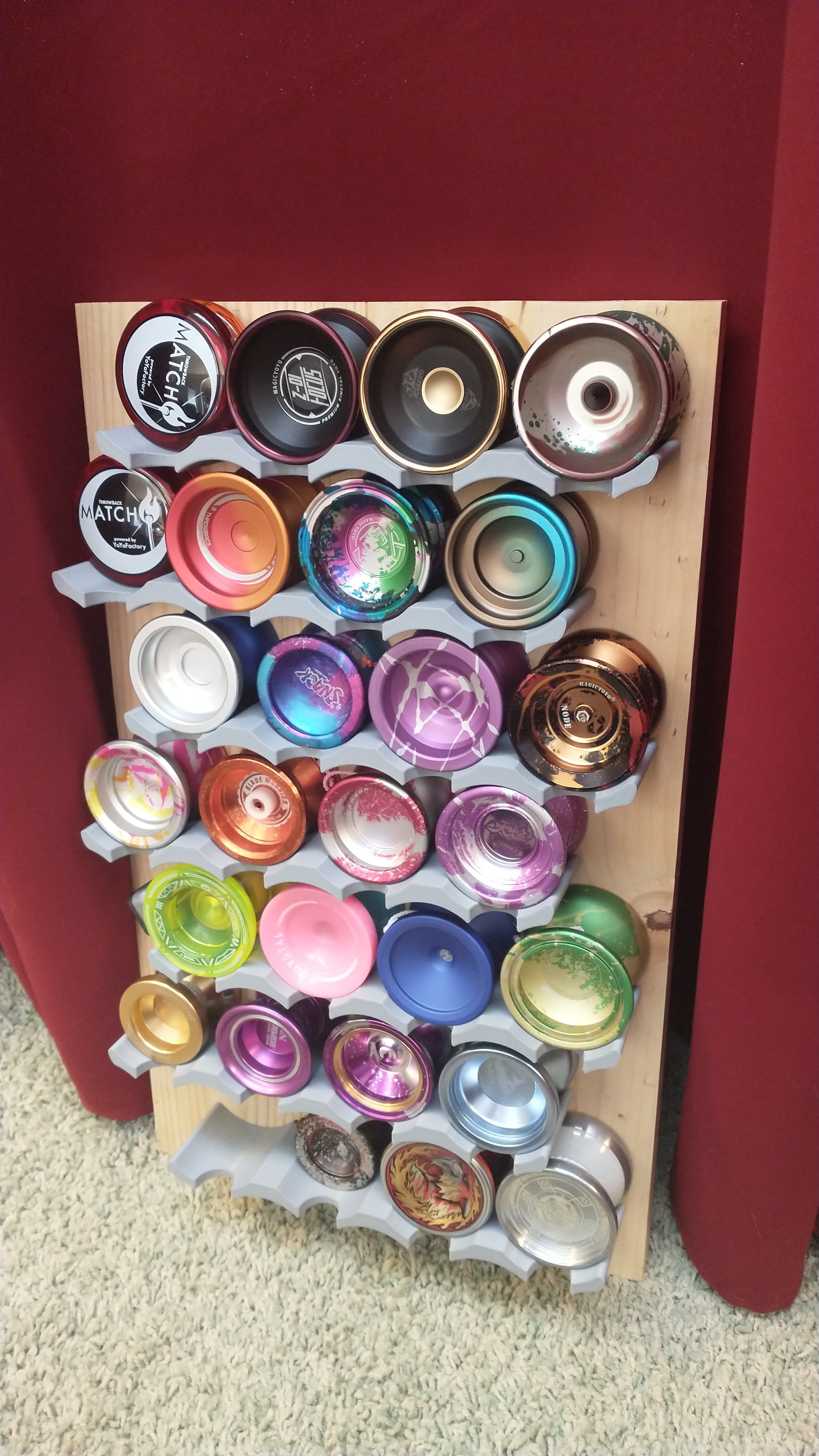 Το ράφι έχει σχεδιαστεί ειδικά για να φιλοξενεί γιο-γιο με διάμετρο έως 58 mm και πλάτος 50 mm, διασφαλίζοντας ότι τα αγαπημένα σας αντίγραφα αποθηκεύονται με ασφάλεια και παρουσιάζονται. Είτε έχετε μια μεγάλη συλλογή για οργάνωση είτε απλά θέλετε να εμφανίσετε μερικά επιλεγμένα μοντέλα, αυτή η ανάρτηση προσφέρει έναν πρακτικό και αισθητικά ευχάριστο τρόπο αποθήκευσης των γιο-γιο σας, χωρίς να καταλαμβάνετε πολύτιμο χώρο στο σπίτι σας.