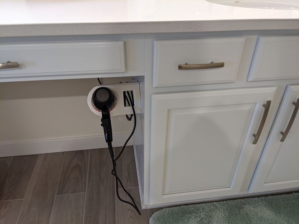 Αυτή η πρακτική θήκη στεγνωτήρα μαλλιών έχει σχεδιαστεί για να τοποθετείται στο πλάι ενός ντουλαπιού μπάνιου. Προσφέρει μια λύση εξοικονόμησης χώρου που βοηθά να διατηρείτε το μπάνιο σας οργανωμένο και απαλλαγμένο από ακαταστασία, καθώς το πιστολάκι μαλλιών σας έχει τη μόνιμη θέση του. Με έναν ενσωματωμένο γάντζο καλωδίου, η θήκη λειτουργεί επίσης ως θήκη καλωδίων, διασφαλίζοντας ότι το καλώδιο τροφοδοσίας εφαρμόζει τακτοποιημένα στη θέση του μετά τη χρήση και ελαχιστοποιεί την εμπλοκή. Αυτό παρέχει εύκολη και καθαρή αποθήκευση, ώστε το πιστολάκι μαλλιών σας να είναι πάντα σε κοντινή απόσταση όταν το χρειάζεστε.