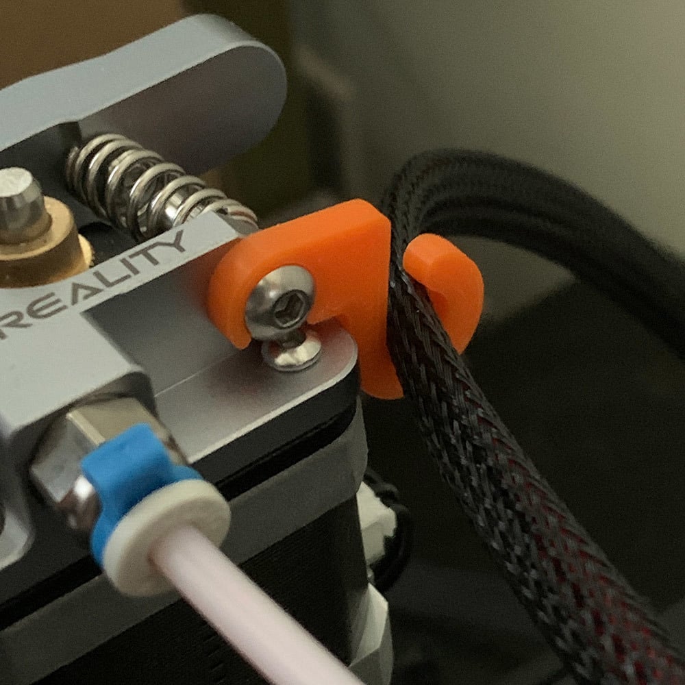 Αυτό το πρακτικό κλιπ καλωδίων έχει σχεδιαστεί για να βελτιώσει τη διαχείριση καλωδίων στον τρισδιάστατο εκτυπωτή Ender 3 ή Ender 3 Pro. Είναι ειδικά σχεδιασμένο για να υποστηρίζει το καλώδιο της κεφαλής εκτύπωσης, ώστε να μην καταπονεί άσκοπα τον σωλήνα bowden, συμβάλλοντας σε μια πιο σταθερή και ομαλή διαδικασία εκτύπωσης. Το κλιπ τοποθετείται εύκολα κάτω από την υπάρχουσα βίδα ελατηρίου σε έναν αναβαθμισμένο μεταλλικό εξωθητήρα, καθιστώντας την εγκατάσταση γρήγορη και απλή χωρίς να χρειάζεται να αφαιρέσετε άλλα εξαρτήματα. Χρησιμοποιώντας αυτό το κλιπ καλωδίων, μπορείτε να επιτύχετε μια πιο οργανωμένη ρύθμιση και να μειώσετε τον κίνδυνο να κρέμονται χαλαρά τα καλώδια και να παρεμβαίνουν. Είναι μια απλή αλλά αποτελεσματική λύση για τη βελτιστοποίηση της εμπειρίας του εκτυπωτή σας.