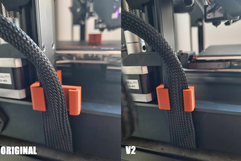 Το νέο κλιπ καλωδίων είναι 6 mm πιο σφιχτό από την αρχική έκδοση, γεγονός που εξασφαλίζει σταθερό κράτημα καλωδίου, έτσι ώστε το καλώδιο να κάθεται σφιχτά χωρίς να προεξέχει. Αυτό συμβάλλει σε μια πιο βελτιωμένη και ασφαλή εγκατάσταση του εκτυπωτή σας. Επιπλέον, το κλιπ πλαισίου είναι 1 mm πιο φαρδύ, γεγονός που καθιστά ευκολότερη την τοποθέτηση και την αφαίρεση της βάσης. Για όσους προτιμούν μια ελαφρώς πιο χαλαρή εφαρμογή, υπάρχει μια εναλλακτική έκδοση που είναι 2 mm πιο φαρδιά, αφήνοντας περισσότερο χώρο για το καλώδιο και λειτουργεί ως ρυθμιζόμενος σφιγκτήρας καλωδίων.