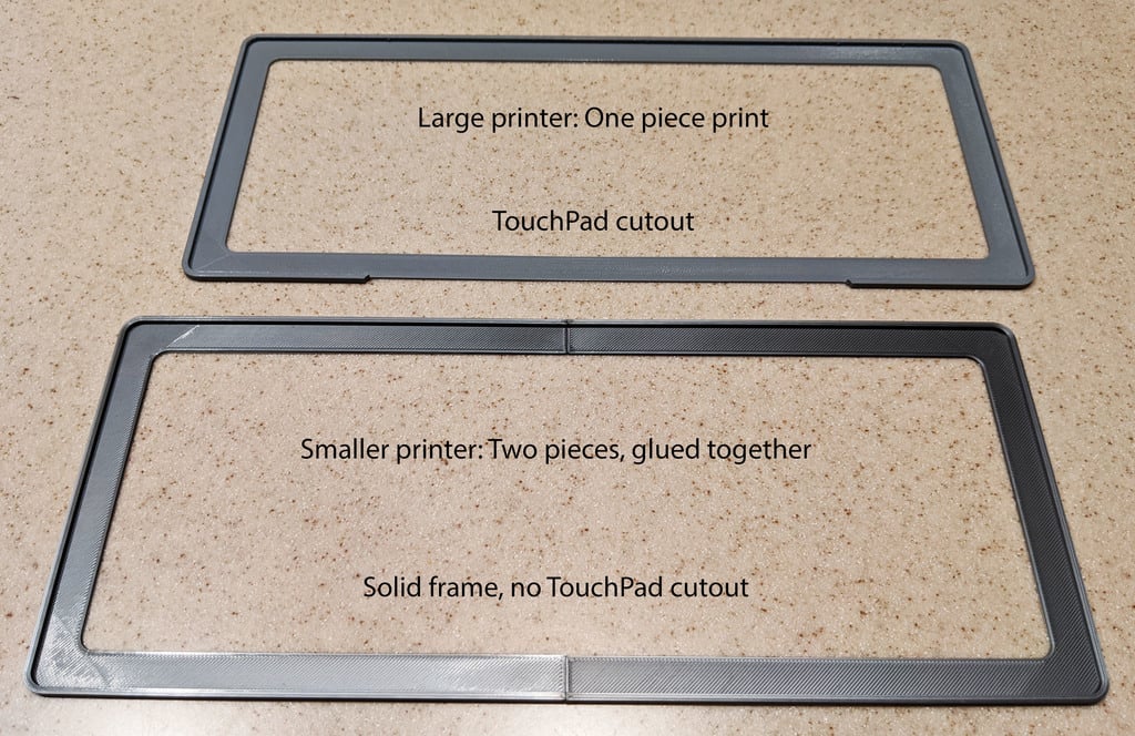 Η συμβατότητα είναι εγγυημένη με νεότερα μοντέλα MacBook Pro, ειδικά αυτά με πληκτρολόγια Butterfly, και έχει δοκιμαστεί με ένα MacBook Pro 15" 2018. Έχετε την επιλογή να επιλέξετε μεταξύ δύο παραλλαγών σχεδίασης: ένα πλήρες πλαίσιο που περιβάλλει ολόκληρο το πληκτρολόγιο ή μια παραλλαγή με μια πρακτική εσοχή στο μπροστινό μέρος, η οποία διασφαλίζει ότι το TouchPad σας παραμένει πλήρως προσβάσιμο.