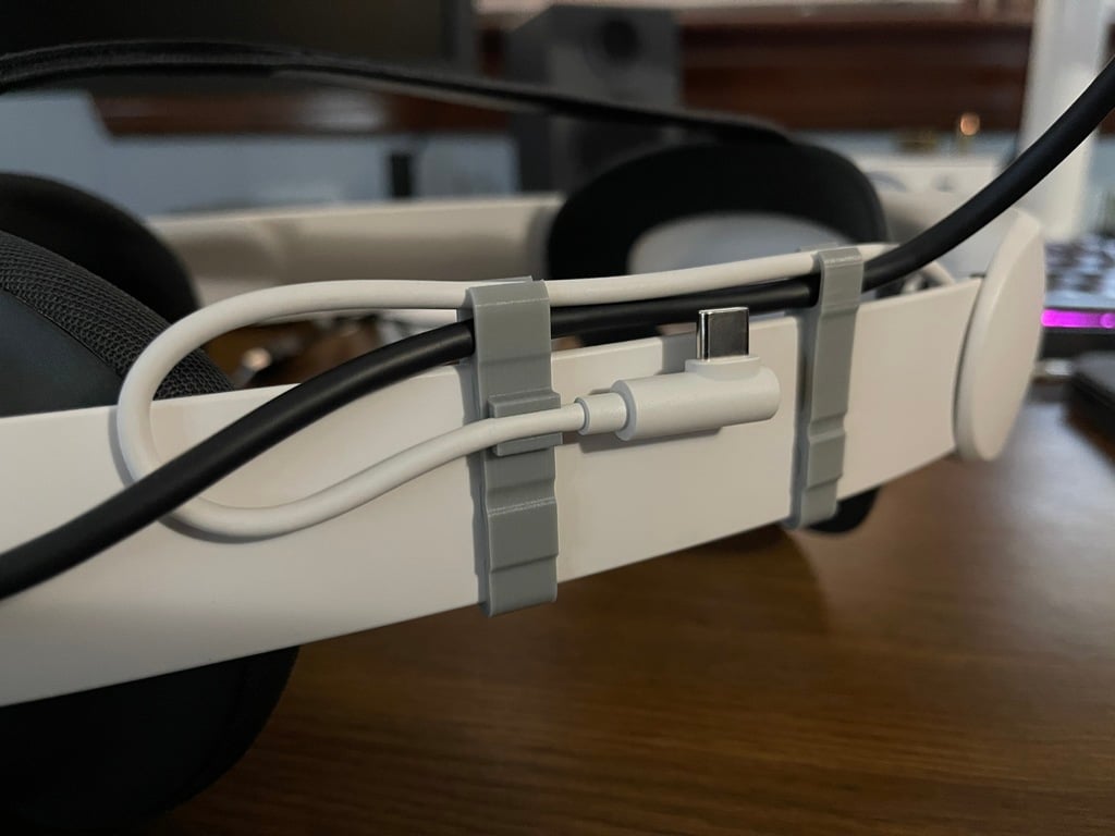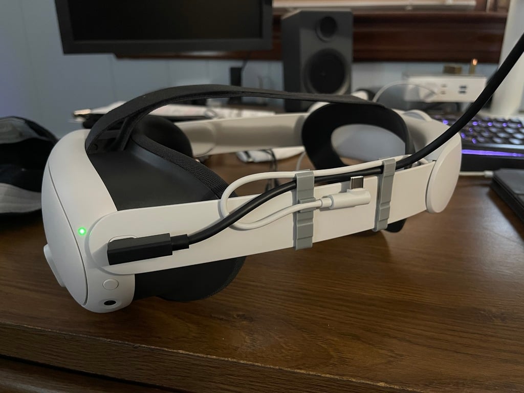 Το κλιπ παρέχει μια οργανωμένη και ασφαλή λύση διατηρώντας το καλώδιο Link και το καλώδιο μπαταρίας τακτοποιημένα στη θέση τους κατά μήκος του Quest 3 Elite Strap. Διασφαλίζει ότι η σύνδεσή σας Link παραμένει σταθερή, ενώ παράλληλα διατηρείται η λειτουργία φόρτισης μέσω της μονάδας μπαταρίας, όλα αυτά χωρίς τα καλώδια να κρέμονται ενοχλητικά γύρω από το κεφάλι σας. Η σφιχτή εφαρμογή διασφαλίζει ότι το καλώδιο παραμένει στερεωμένο κατά την κίνηση.