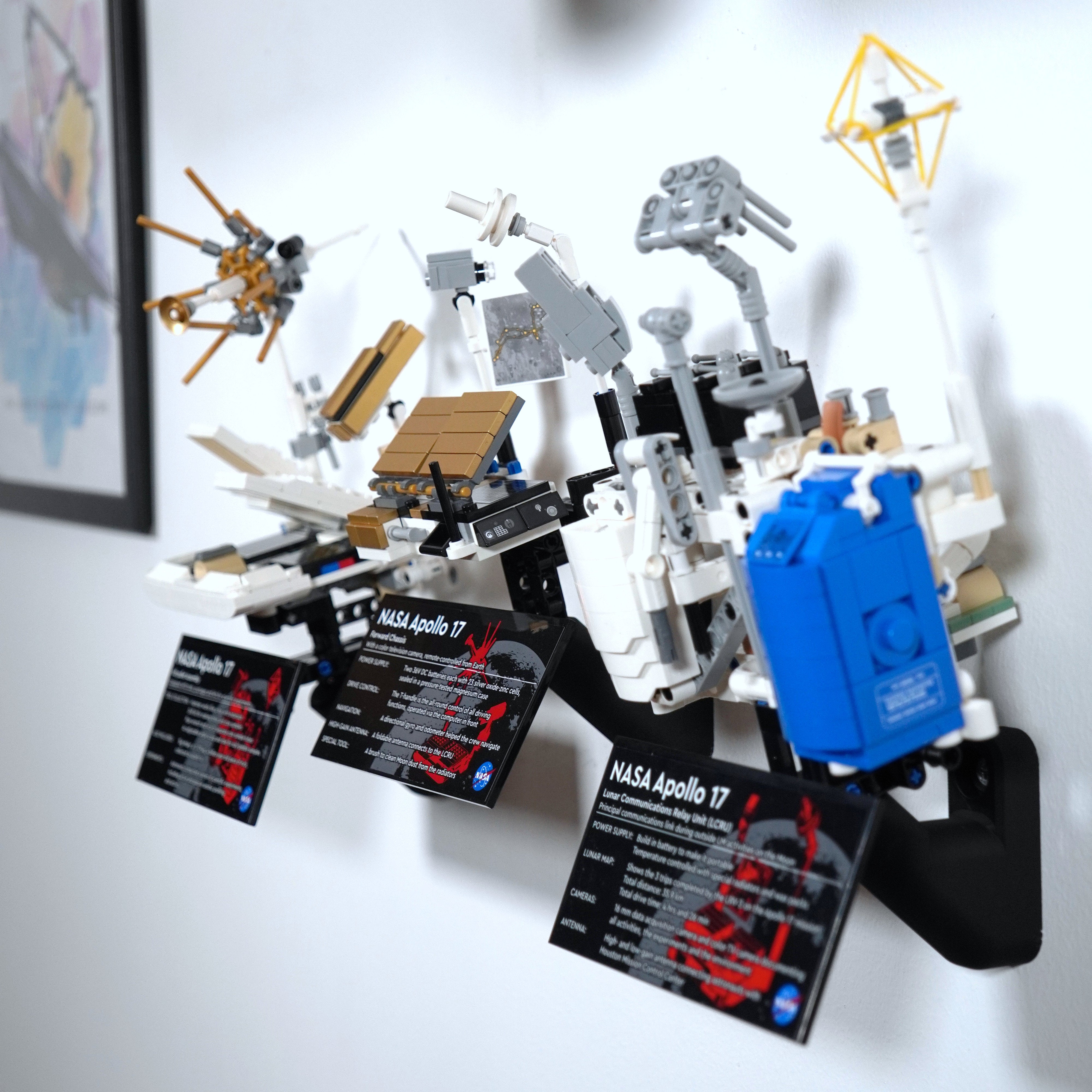 Παρουσιάστε το όχημα Lunar Roving της NASA Apollo με κομψότητα με αυτή την επιτοίχια βάση. Επιτρέπει την ευέλικτη τοποθέτηση, είτε διπλωμένο είτε ξεδιπλωμένο, και περιλαμβάνει ξεχωριστά στηρίγματα για τις ενότητες και την πλάκα πληροφοριών. Ο σχεδιασμός εξασφαλίζει εύκολη αφαίρεση και προσαρμοσμένη εγκατάσταση στον τοίχο σας.