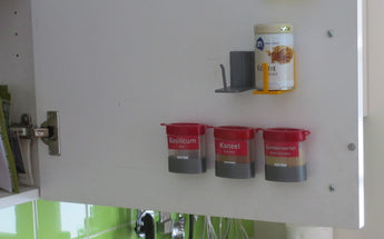 Αυτή η θήκη για βάζα μπαχαρικών έχει σχεδιαστεί για να διατηρεί τα βάζα μπαχαρικών Verstegen οργανωμένα και εύκολα προσβάσιμα μέσα στο ντουλάπι της κουζίνας σας. Τοποθετώντας τη θήκη στο εσωτερικό μιας πόρτας ή ενός τοίχου ντουλαπιού, μπορείτε να αξιοποιήσετε τον χώρο στο έπακρο και να δημιουργήσετε μια αποτελεσματική αποθήκευση μπαχαρικών. Τα ποτήρια είναι στερεωμένα με ασφάλεια, ώστε να είναι εύκολο να τα βρείτε όταν μαγειρεύετε. Αυτή η λύση συμβάλλει στη διατήρηση της τάξης στην κουζίνα και απελευθερώνει χώρο στα ράφια ή στους πάγκους.