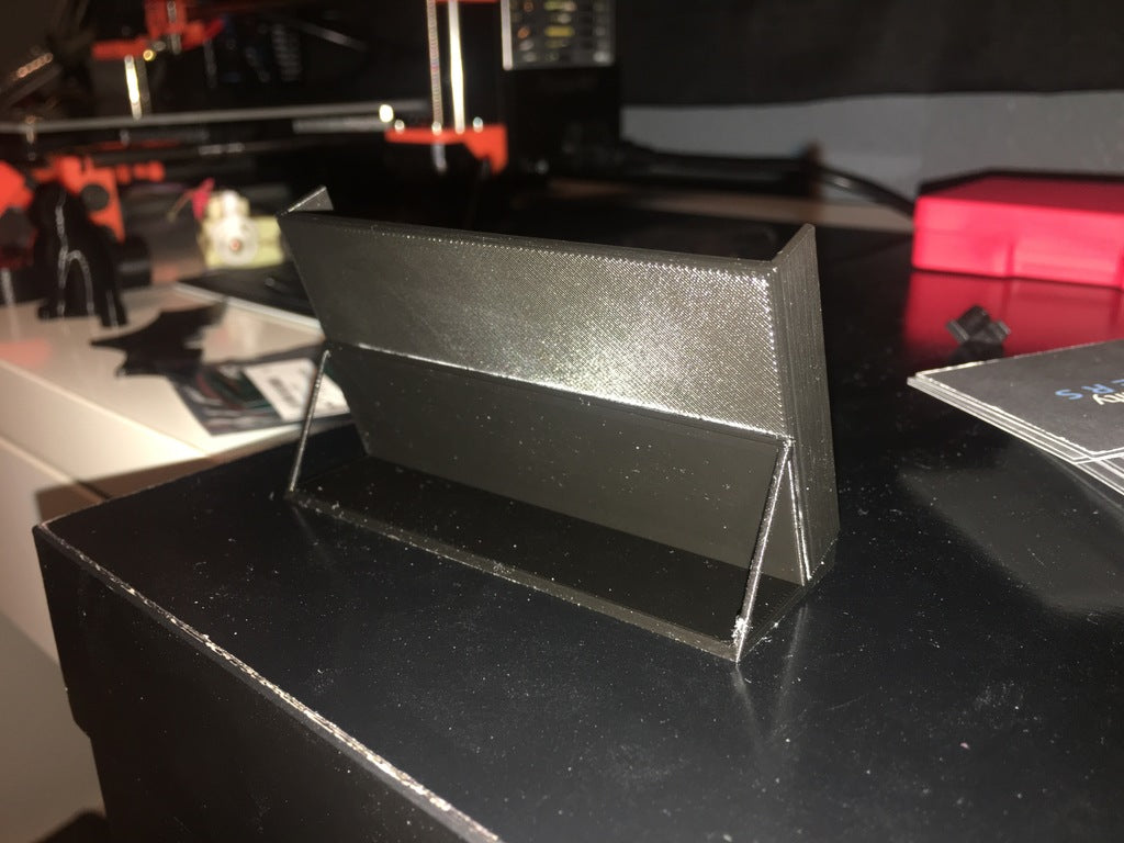Απλή θήκη επαγγελματικών καρτών για επαγγελματικές κάρτες τυπικού μεγέθους. Αυτό το μοντέλο είναι ιδανικό για τις ελαφρώς παχύτερες επαγγελματικές κάρτες και μπορεί εύκολα να χωρέσει 10 κομμάτια. Η θήκη επαγγελματικών καρτών διατίθεται σε δύο εκδόσεις, μία με πόδια στήριξης και μία χωρίς (τα πόδια στήριξης λειτουργούν μόνο ως οπτική λεπτομέρεια). Στο κάτω μέρος υπάρχουν μικρές εσοχές για λαστιχένια πώματα, έτσι ώστε η θήκη να μην γλιστράει στο γραφείο.