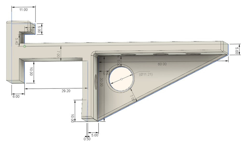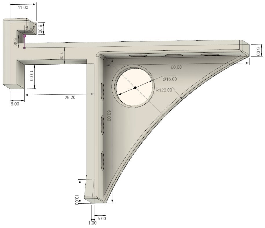 Πρόκειται για ράφι για τοποθέτηση σε κρεβάτι IKEA με πλευρικό πάχος 29mm. Το ράφι αποτελείται από τρία μέρη: δύο βάσεις και ένα πιάτο. Μπορείτε να επιλέξετε από ποιο υλικό θα είναι κατασκευασμένη η σανίδα, για παράδειγμα κόντρα πλακέ κομμένο με λέιζερ. Η πλάκα έχει πάχος 5mm και έχει μέγεθος 260x210mm, αλλά το μέγεθός της μπορεί να ρυθμιστεί όπως απαιτείται. Μπορείτε να εκτυπώσετε αντίστροφα εάν πρέπει να τοποθετήσετε το ράφι στην άλλη πλευρά. Σύνδεσμος στο αρχείο σχεδίασης: https://a360.co/2Syop3N