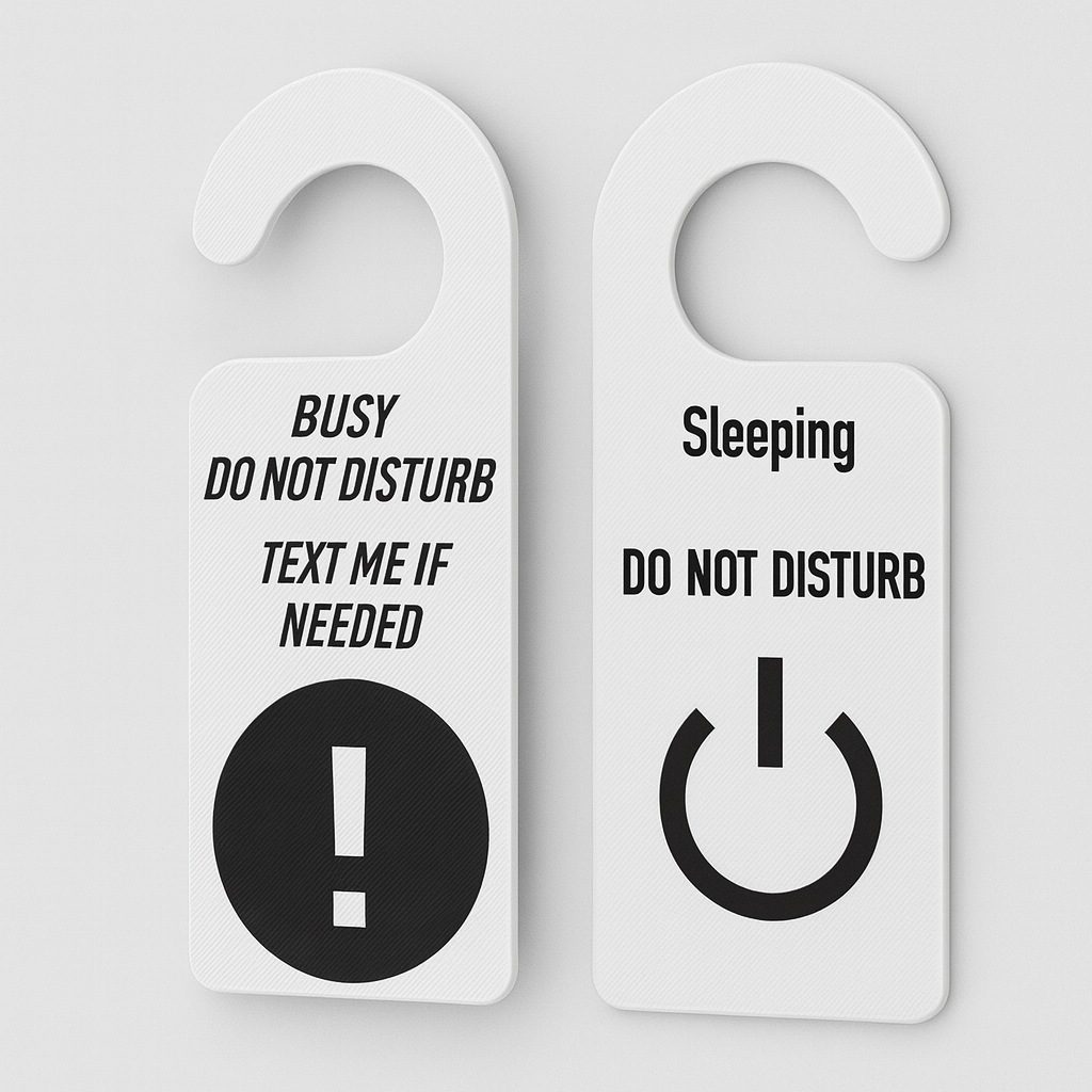 Αυτή η πινακίδα είναι ένας ευγενικός τρόπος να πείτε στους ανθρώπους ότι συγκεντρώνεστε, εργάζεστε ή απλώς θέλετε να μείνετε μόνοι σας προς το παρόν. Η πινακίδα καταφέρνει τόσο να εκφράσει την επιθυμία σας να σας αφήσουν ήσυχους με σταθερό και ταυτόχρονα ευγενικό τρόπο, ώστε να διατηρήσετε την ειρήνη και την αρμονία.