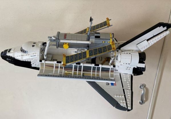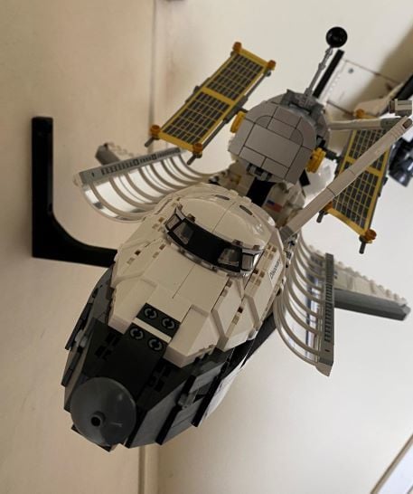 Μια βάση τοίχου για το LEGO 10283 Shuttle Discovery. Με αυτό το στήριγμα, το λεωφορείο και το hubble μαζί θα ζυγίζουν περίπου 1,75 κιλά, κάτι που είναι εντός της χωρητικότητας του στηρίγματος, η οποία έχει μετρηθεί σε τουλάχιστον 2,5 κιλά. Το λεωφορείο παρουσιάζεται με κλίση 10 μοιρών και κύλιση 20 μοιρών προς την αριστερή πλευρά.