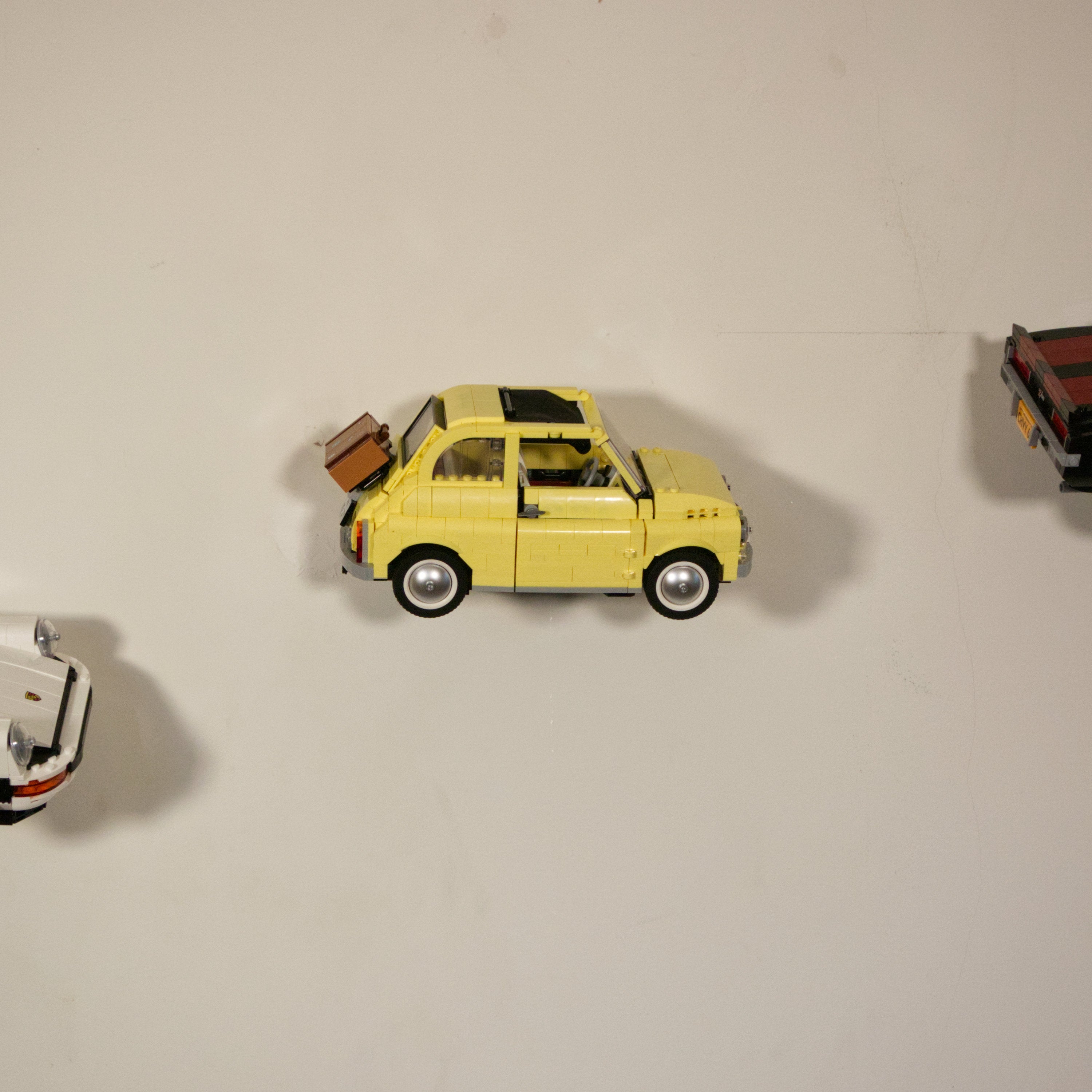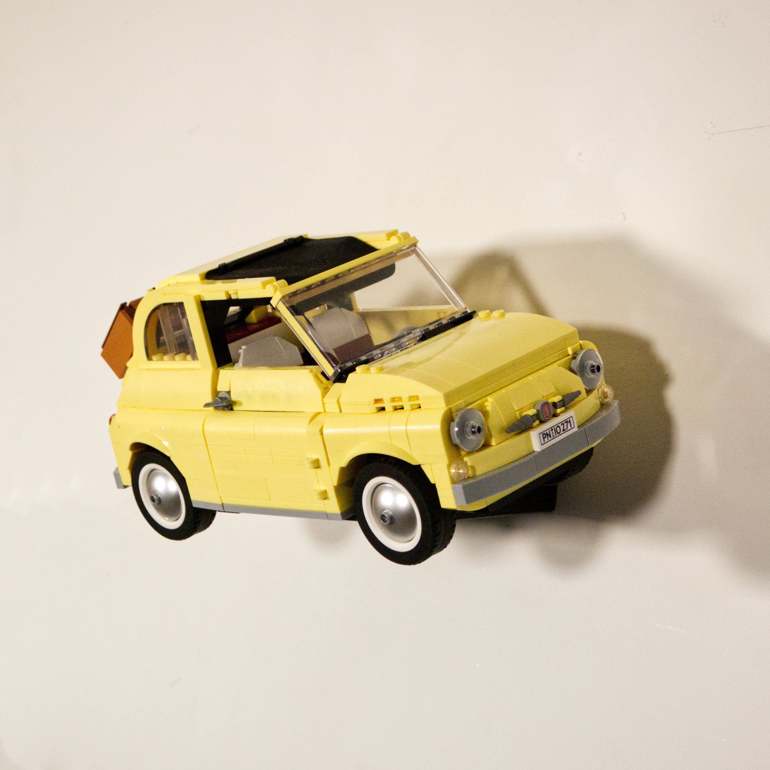 Αυτή η βάση στήριξης τοίχου είναι ειδικά σχεδιασμένη για να αναδεικνύει τα σετ LEGO Creator Expert Fiat 500 77942 και 10271. Παρέχει μια ασφαλή λύση στήριξης στον τοίχο, όπου το αυτοκίνητο μπορεί εύκολα να τοποθετηθεί και να αφαιρεθεί ξανά χωρίς κόπο. Η ανάρτηση απαιτεί μόνο μία βίδα για την τοποθέτησή της.