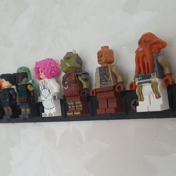 Μια μικρή βάση τοίχου που χωράει έξι μίνι φιγούρες LEGO. Διαθέτει δύο οπές για βίδες 3,5 mm. Οι μινιατούρες με κάπες, jetpacks ή άλλα πίσω αξεσουάρ μπορεί να απαιτούν μια πρόσθετη πλάκα 1x2.
