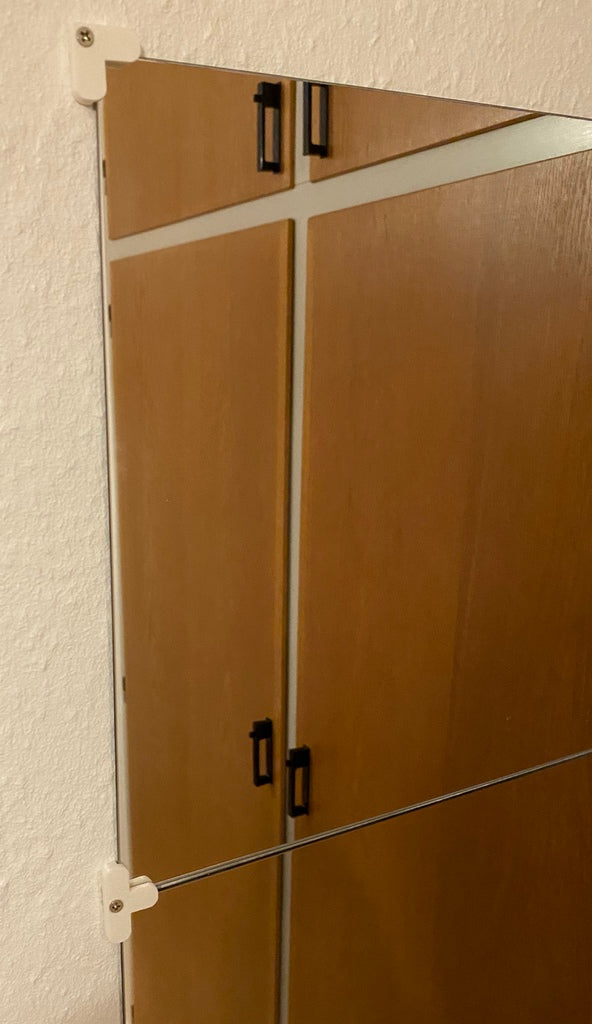 Στήριγμα τοίχου για καθρέφτες. Ταιριάζει σε πάχος καθρέπτη 2mm (καθρέπτες IKEA LOTS 30x30 cm). Αυτές οι βάσεις τοποθετούνται εύκολα και δίνουν στον τοίχο σας μια καθαρή και τακτοποιημένη εμφάνιση.