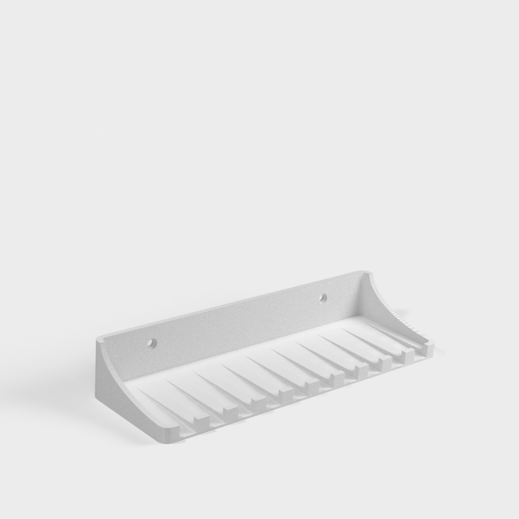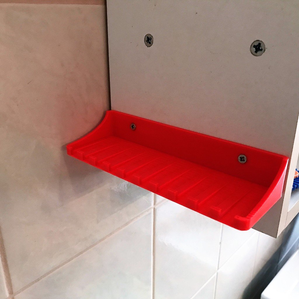 Ένα επιτοίχιο ράφι μπάνιου που μπορεί να εκτυπωθεί και να τοποθετηθεί με βίδες. Το ράφι είναι ιδανικό για την αποθήκευση μικρών ειδών τουαλέτας και προσθέτει απαραίτητο επιπλέον αποθηκευτικό χώρο σε κάθε μπάνιο. Το μικρό του μέγεθος το καθιστά ιδανικό για μικρά μπάνια.
