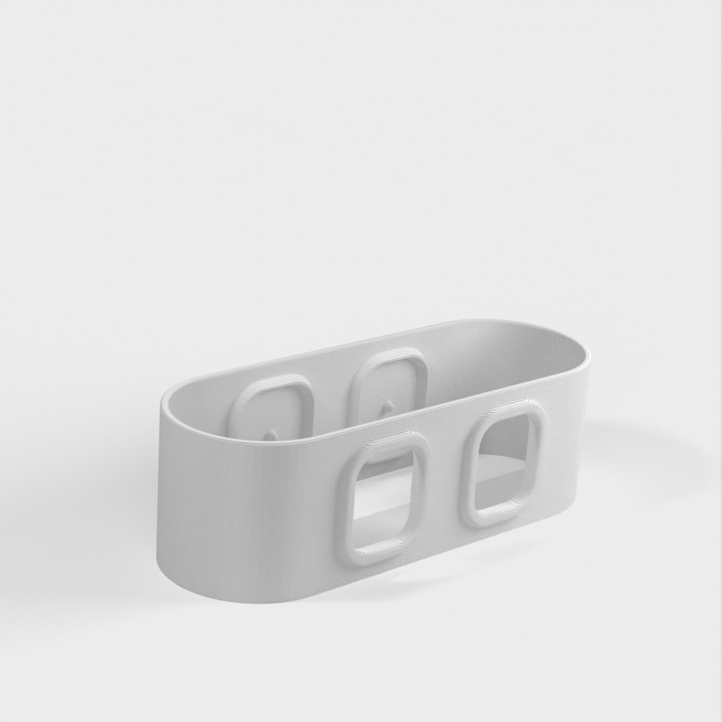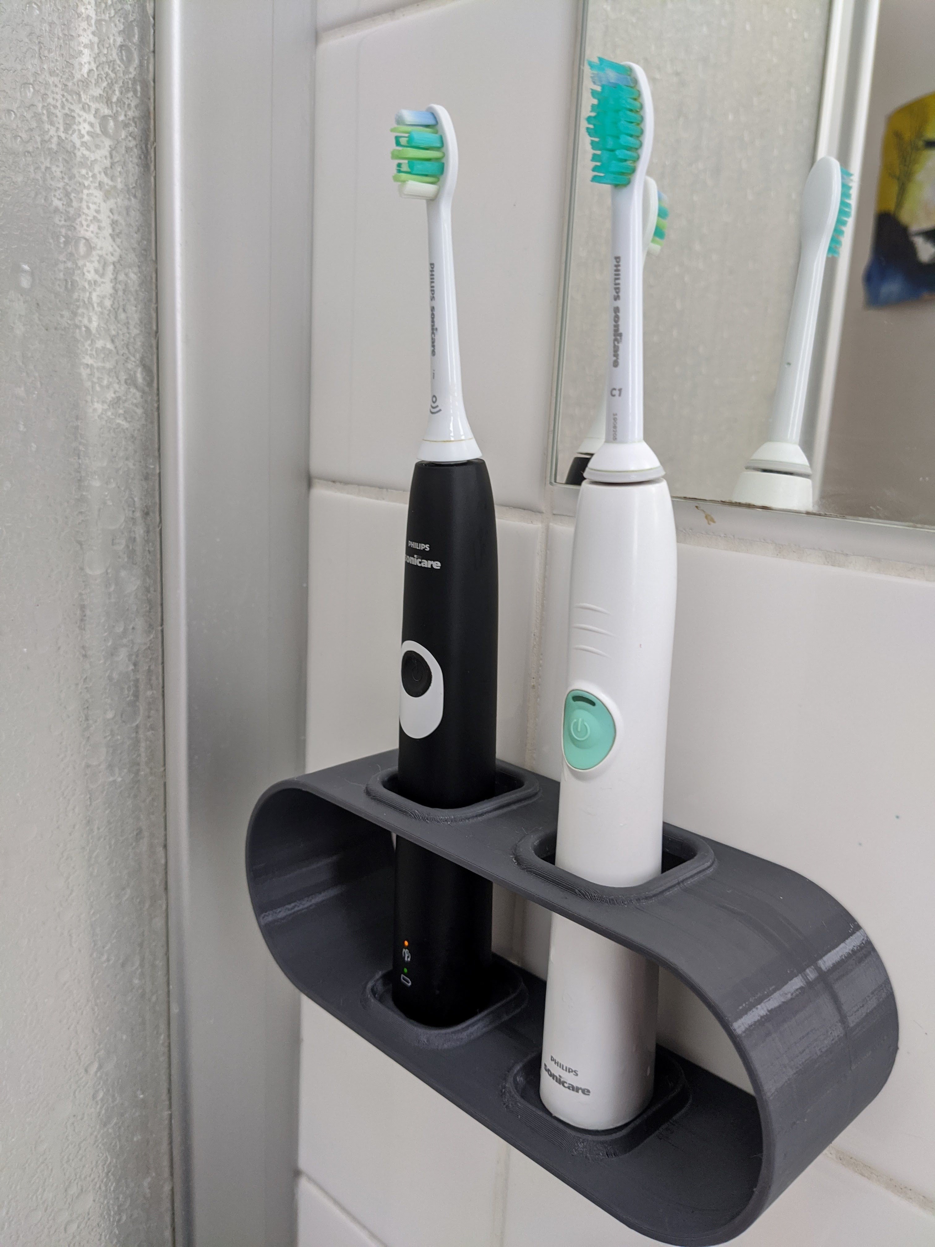 Θήκη για ηλεκτρικές οδοντόβουρτσες σχεδιασμένη για να χωράει δύο οδοντόβουρτσες (Philips Sonicare). Αυτή η θήκη μπορεί να τοποθετηθεί εύκολα σε οποιαδήποτε επιφάνεια χρησιμοποιώντας ταινία τοποθέτησης διπλής όψης. Μια απλή και πρακτική λύση για να διατηρείτε τις ηλεκτρικές οδοντόβουρτσες σας οργανωμένες και εύκολα προσβάσιμες.