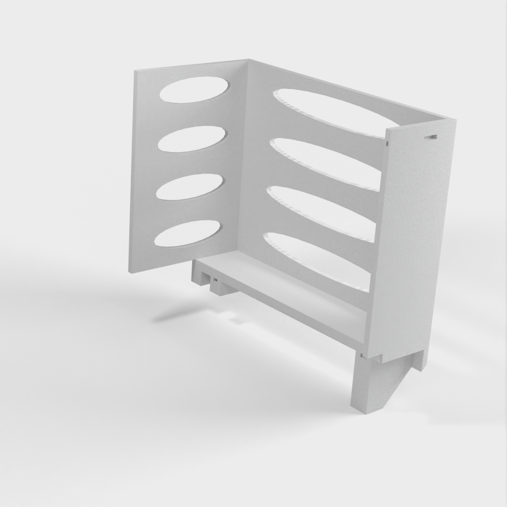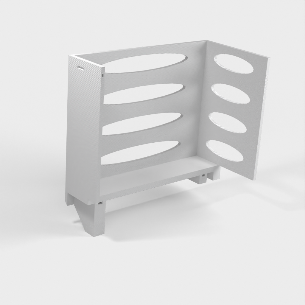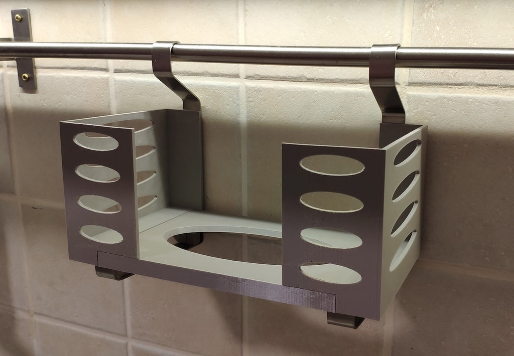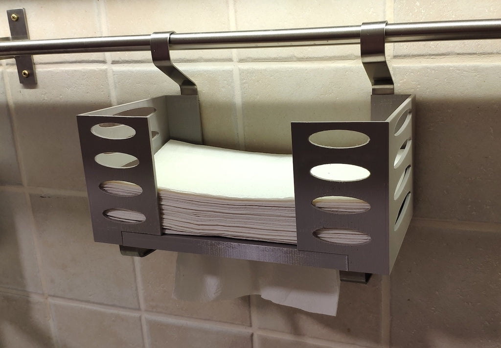 Αυτός ο διανομέας χαρτοπετσέτας μπορεί να τοποθετηθεί σε βραχίονα ραφιού Ikea Grundtal. Απλώς αφαιρέστε το δίσκο και τοποθετήστε τα εκτυπωμένα στοιχεία στις κονσόλες. Το προϊόν έχει μικρότερα ανοίγματα στο κάτω μέρος που μπορούν να χρησιμοποιηθούν για να στερεώσετε τα αντικείμενα μεταξύ τους με ένα λεπτό νήμα. Υπάρχουν επίσης ανοίγματα στο πίσω μέρος για τοποθέτηση. Οι εσωτερικές διαστάσεις είναι 130x254 mm.