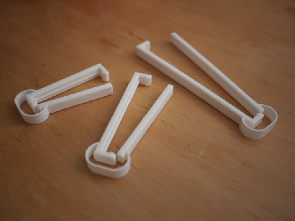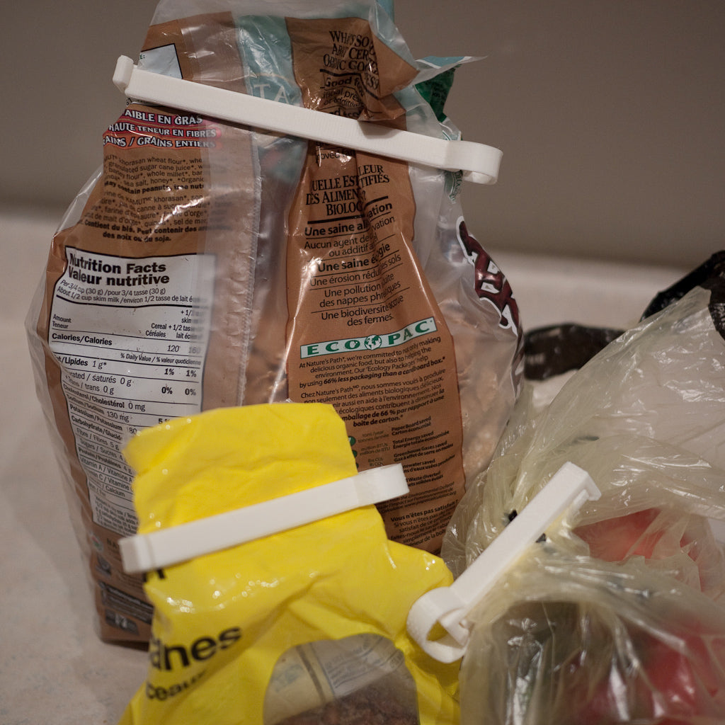 Μερικά διαφορετικά μεγέθη κλιπ τσάντας. Οι διανομείς σακουλών είναι ανθεκτικοί και διαθέτουν μεντεσέ από ένα κομμάτι, καθιστώντας εύκολη τη χρήση τους. Έχουν σχεδιαστεί χωρίς αιχμηρές άκρες, ώστε να είναι άνετη η άσκηση πίεσης πάνω τους.