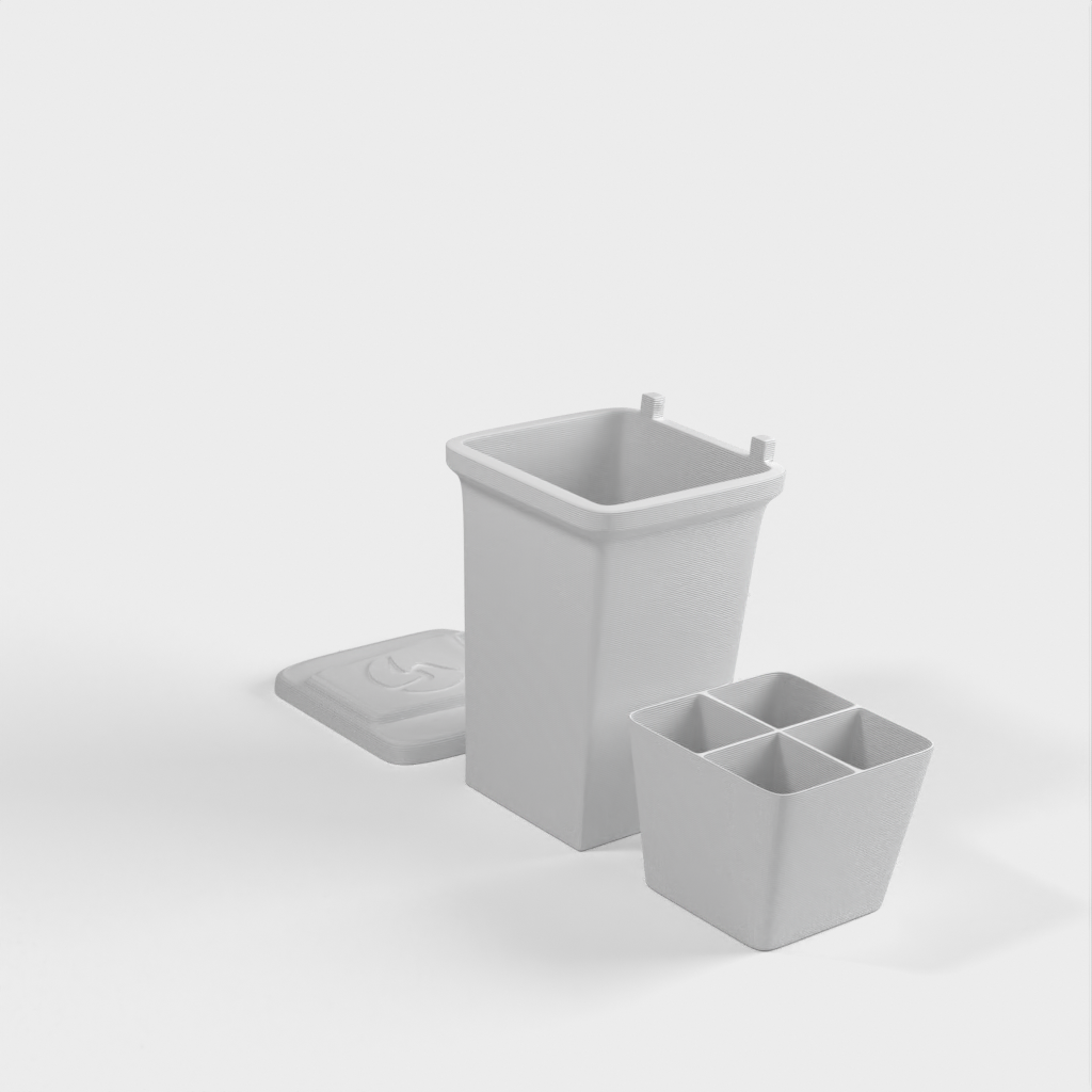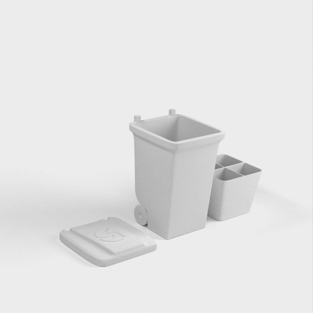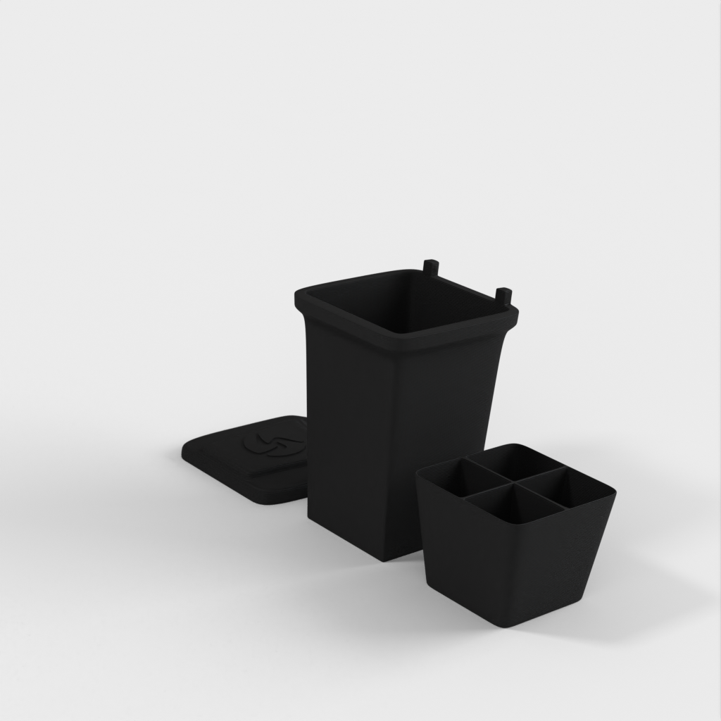 Ένας μίνι κάδος για τη φύλαξη μικρών αντικειμένων, όπως παξιμάδια και βίδες. Εκτυπώστε τα μέρη ξεχωριστά για διαφορετικά υλικά ή όλα μαζί. Το καπάκι κουμπώνει στη θέση του και το ένθετο είναι αφαιρούμενο. Σχεδιάστηκε για το λανσάρισμα του νέου μας υλικού, Landfillament, το οποίο είναι κατασκευασμένο από σκουπίδια! Μάθετε περισσότερα εδώ: https://www.youtube.com/watch?v=TSWXhDounRY