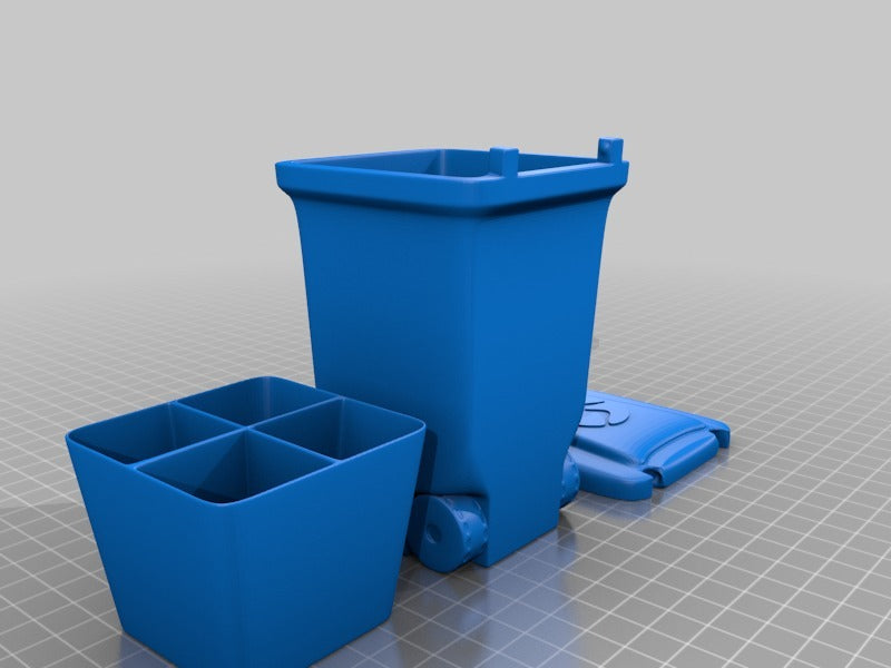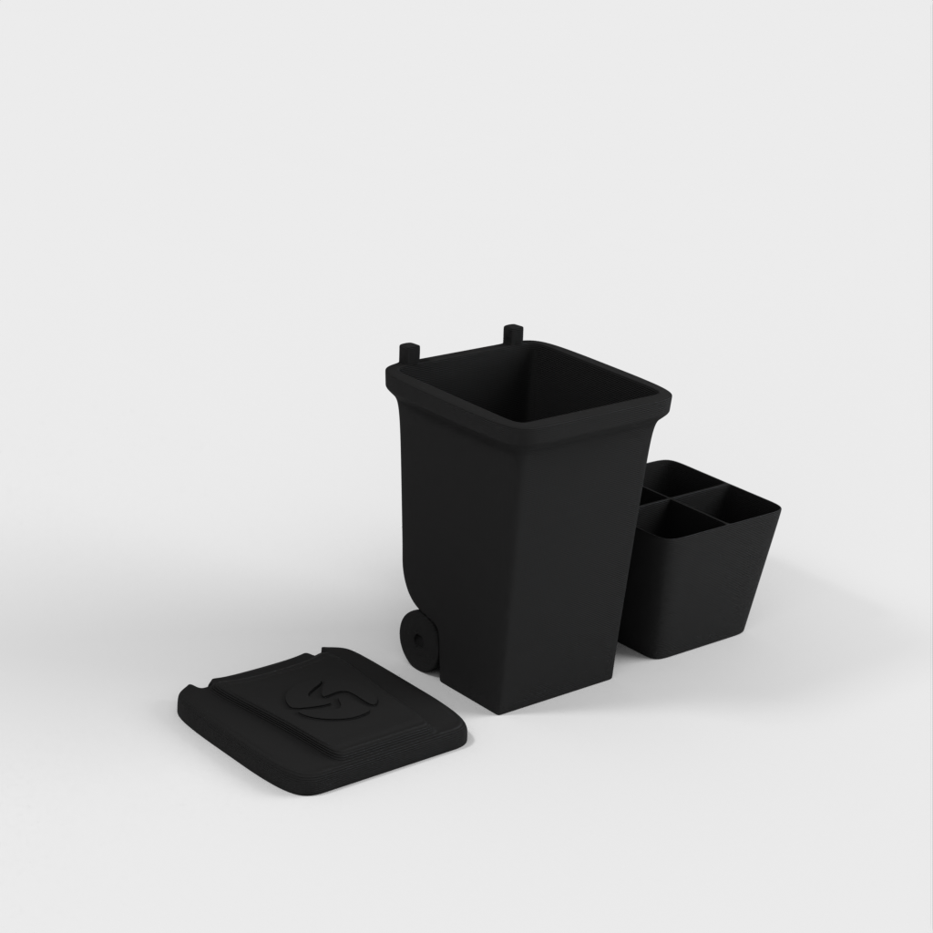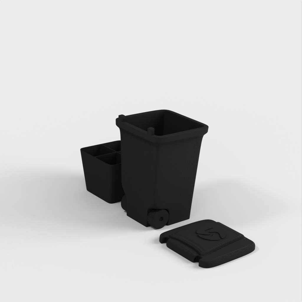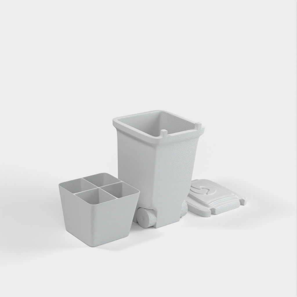 Ένας μίνι κάδος για τη φύλαξη μικρών αντικειμένων, όπως παξιμάδια και βίδες. Εκτυπώστε τα μέρη ξεχωριστά για διαφορετικά υλικά ή όλα μαζί. Το καπάκι κουμπώνει στη θέση του και το ένθετο είναι αφαιρούμενο. Σχεδιάστηκε για το λανσάρισμα του νέου μας υλικού, Landfillament, το οποίο είναι κατασκευασμένο από σκουπίδια! Μάθετε περισσότερα εδώ: https://www.youtube.com/watch?v=TSWXhDounRY