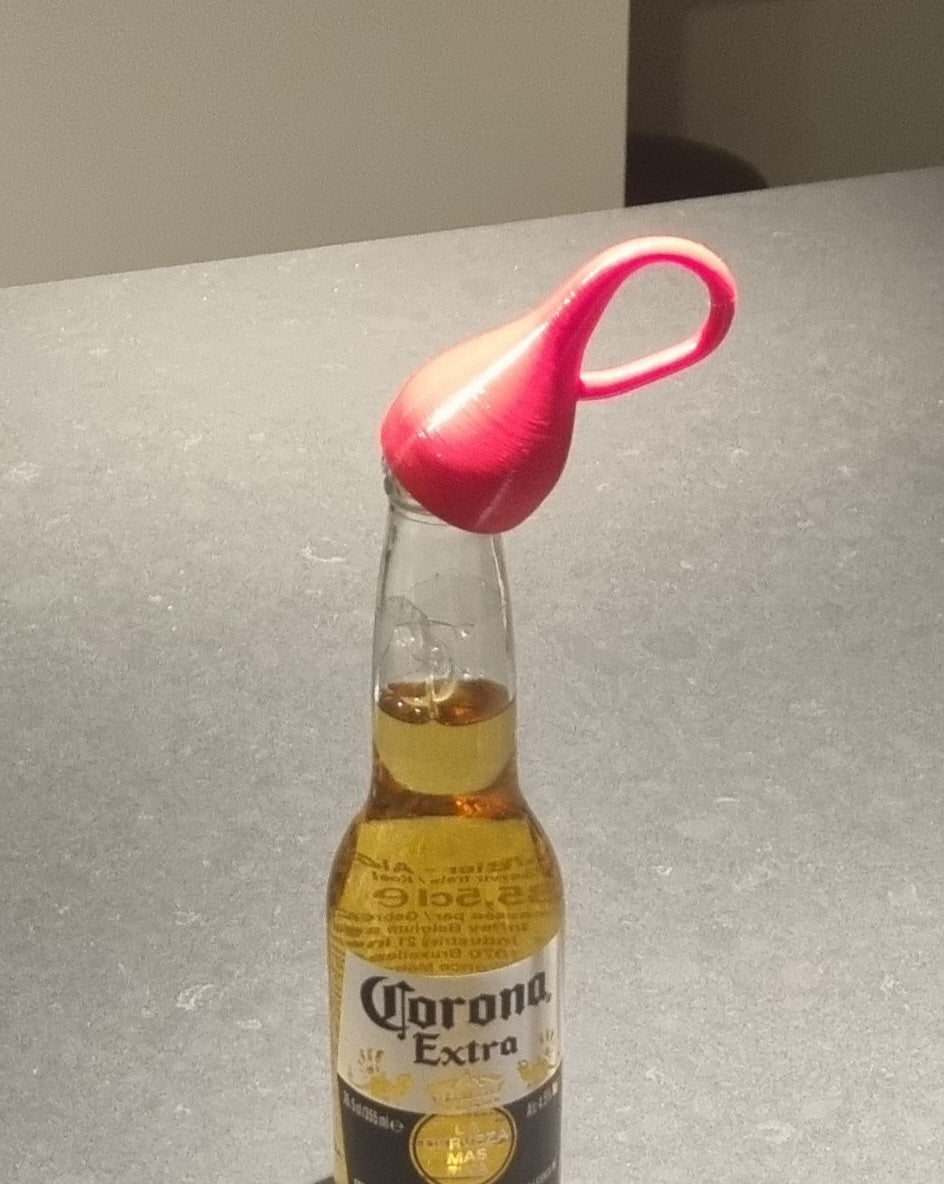 Ένα ανοιχτήρι μπουκαλιών σε σχήμα μπουκαλιού Klein, ένα τετραδιάστατο αντικείμενο που δεν έχει καμία διαφορά μεταξύ του εσωτερικού και του εξωτερικού του. Σημειώστε, ίσως αυτό το εκτύπωμα να είναι σε θέση να ανοίξει μόνο κανονικά μπουκάλια, δυστυχώς όχι μπουκάλια Klein.