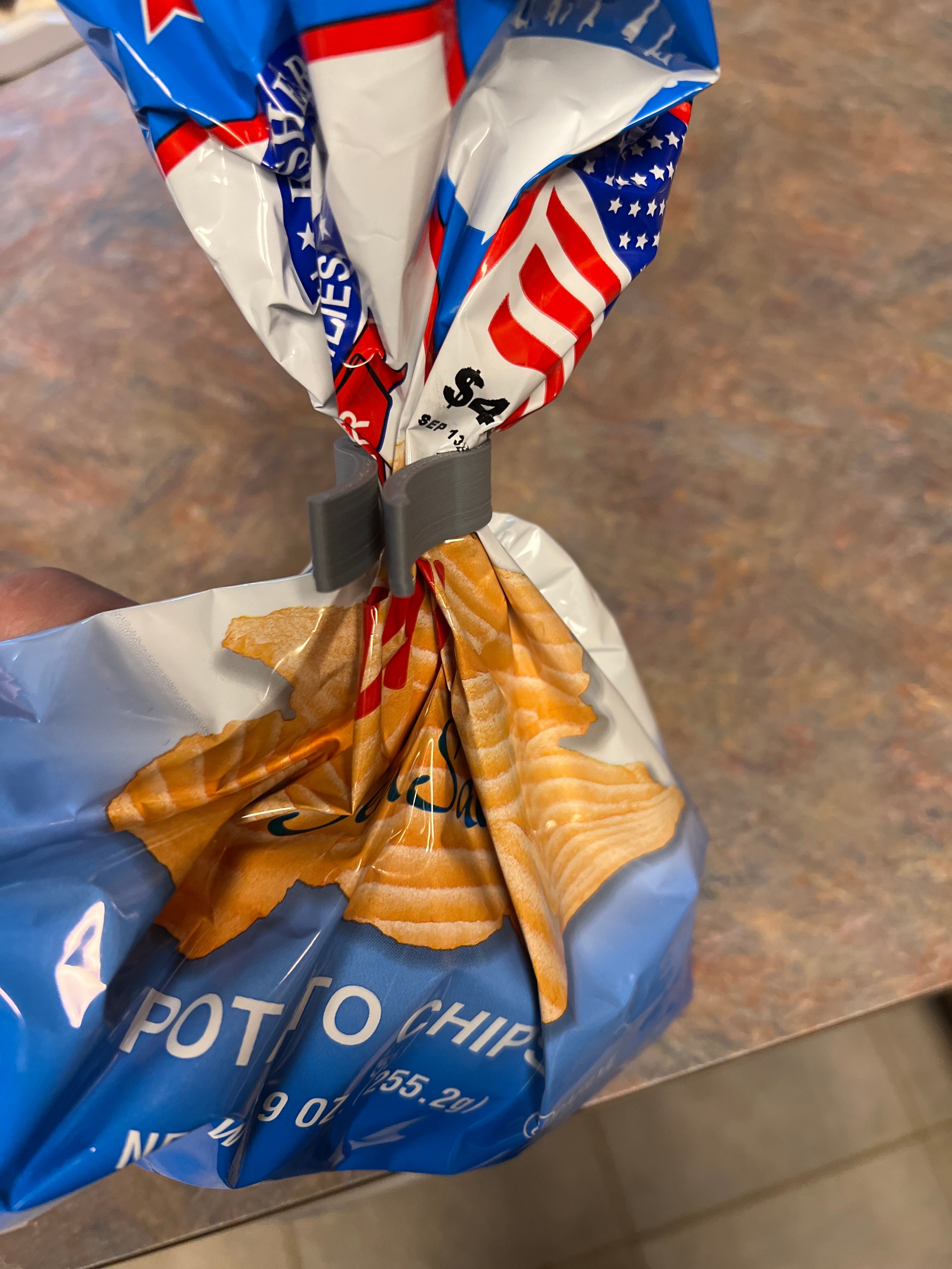 Ένα απλό κλιπ τσάντας σχεδιασμένο για να κρατάει τις τσάντες σας κλειστές. Λειτουργεί καλά για τραγανές σακούλες και βοηθάει να διατηρούνται τα σνακ σας φρέσκα. Δεν έχει δοκιμαστεί ακόμα σε πολλά άλλα.
