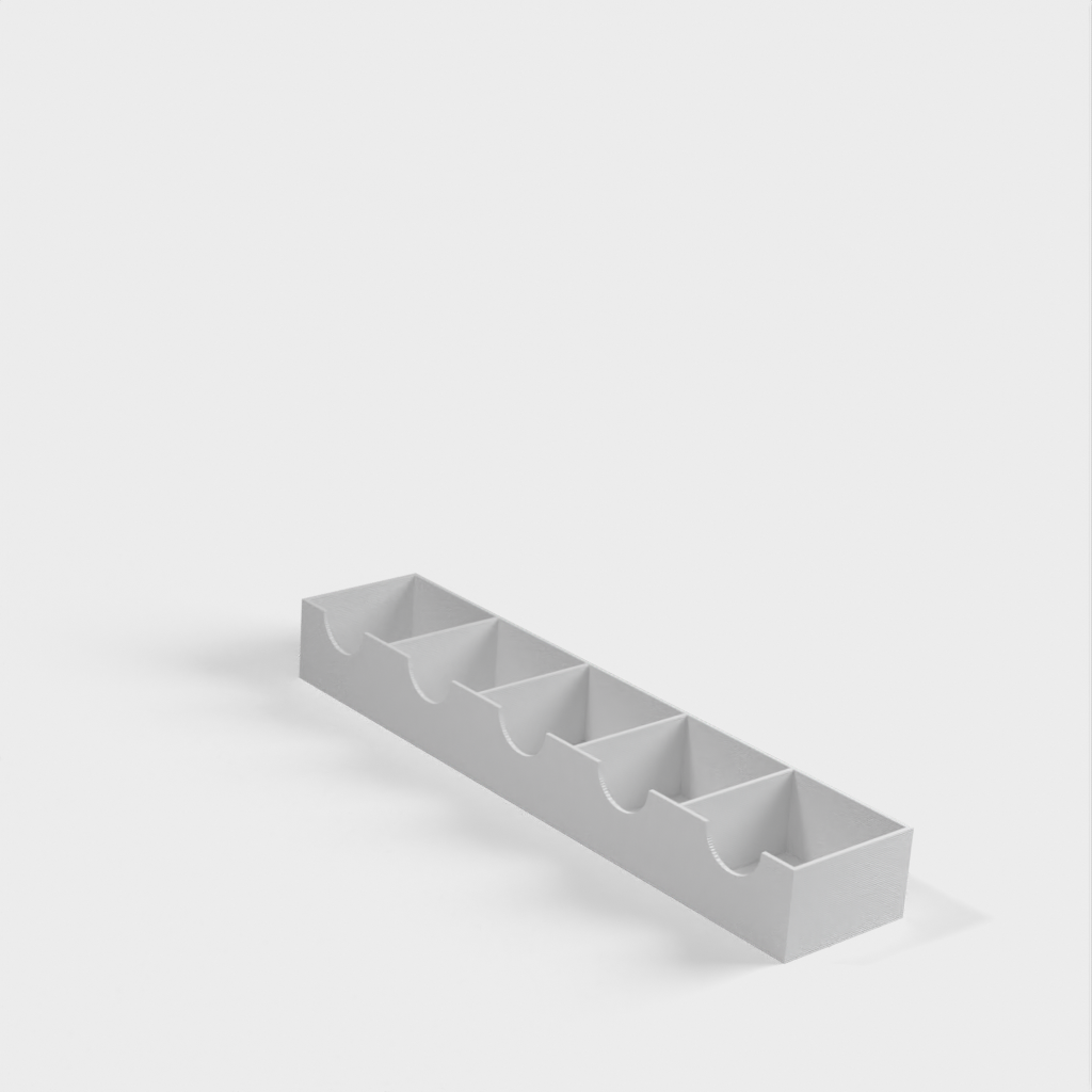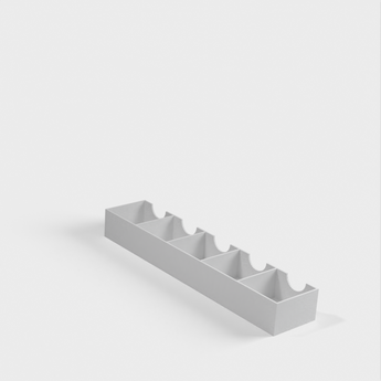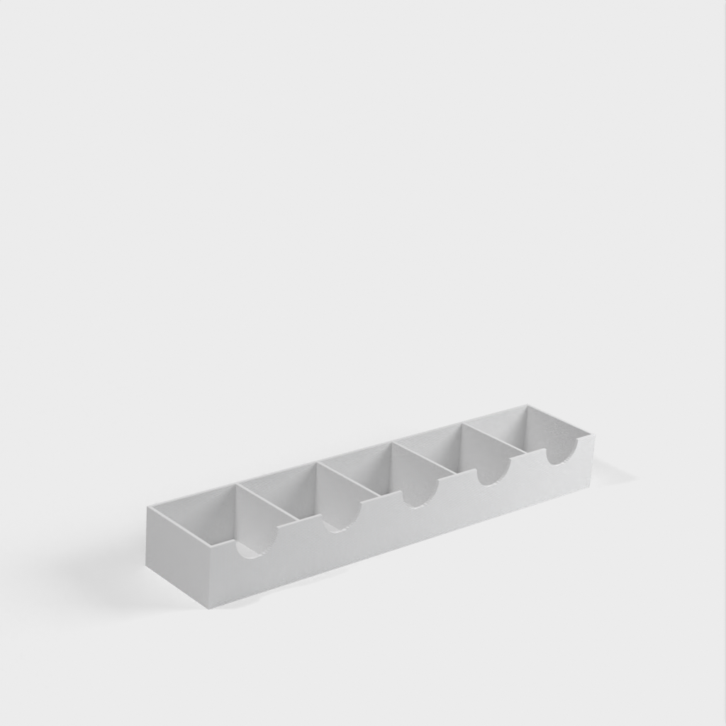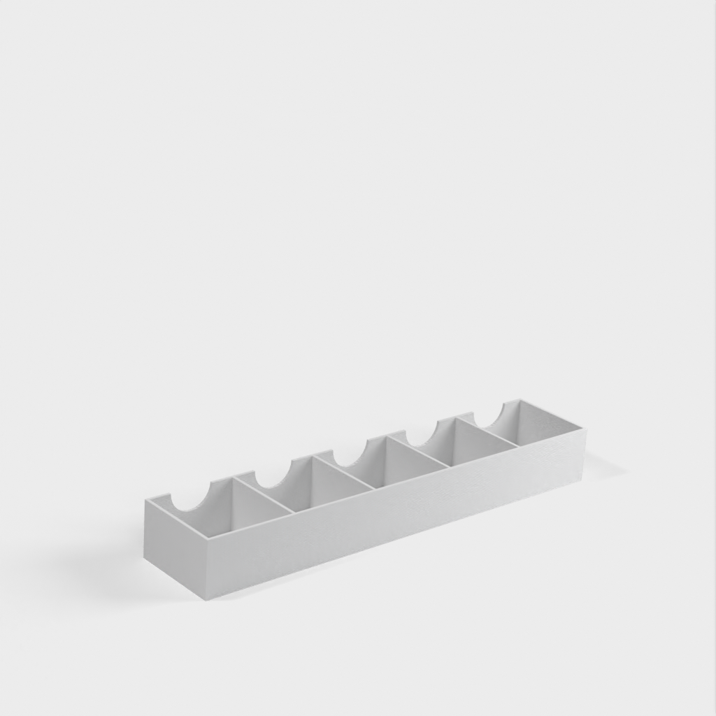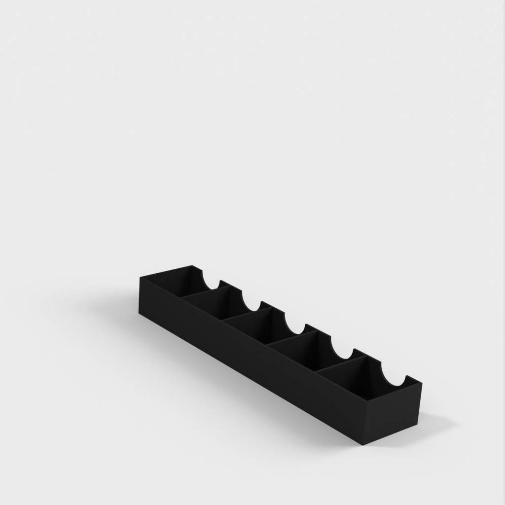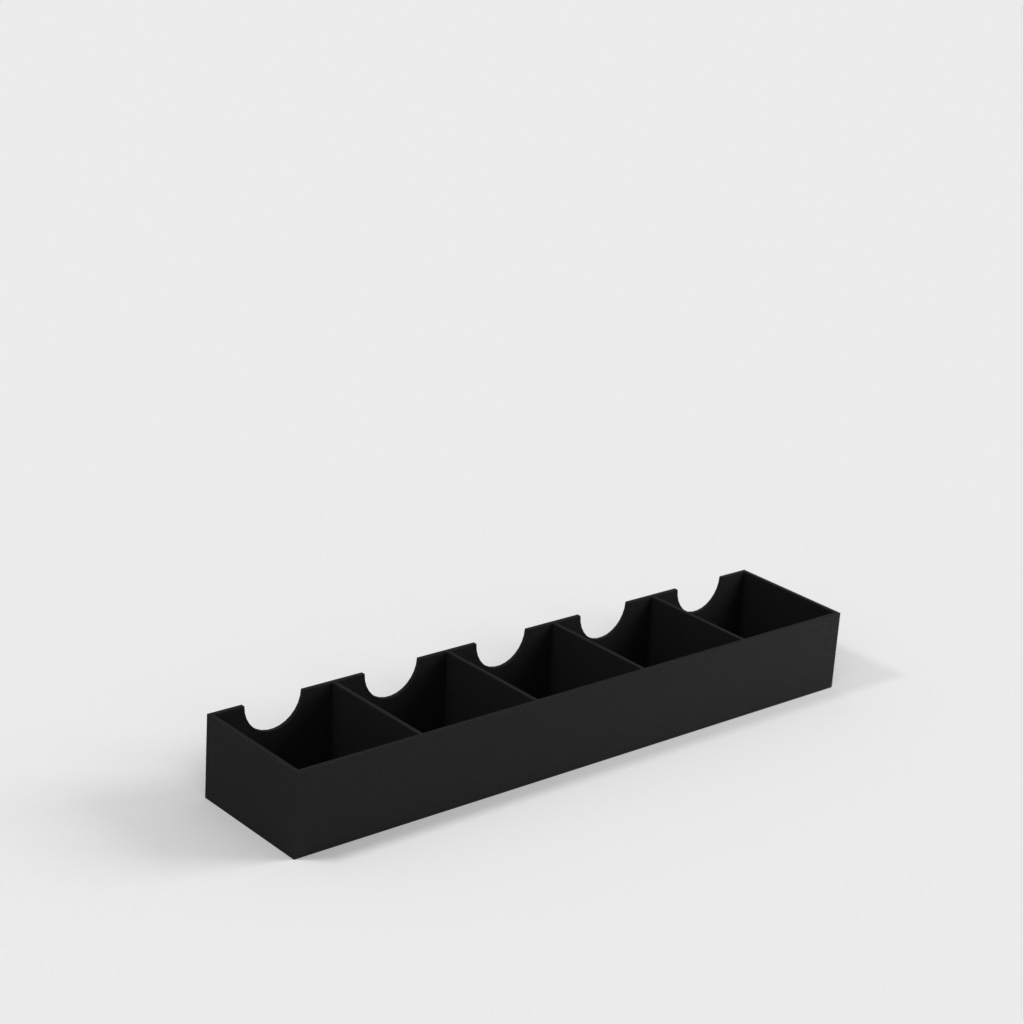 Αυτή η θήκη μπορεί εύκολα να τοποθετηθεί σε πόρτες ντουλαπιών χρησιμοποιώντας αυτοκόλλητη ταινία διπλής όψης για εύκολη και βολική αποθήκευση. Μπορεί να προσαρμοστεί στις συγκεκριμένες ανάγκες σας χρησιμοποιώντας το OpenSCAD και μπορεί να χωρέσει τετράγωνα μπουκάλια 45 mm.