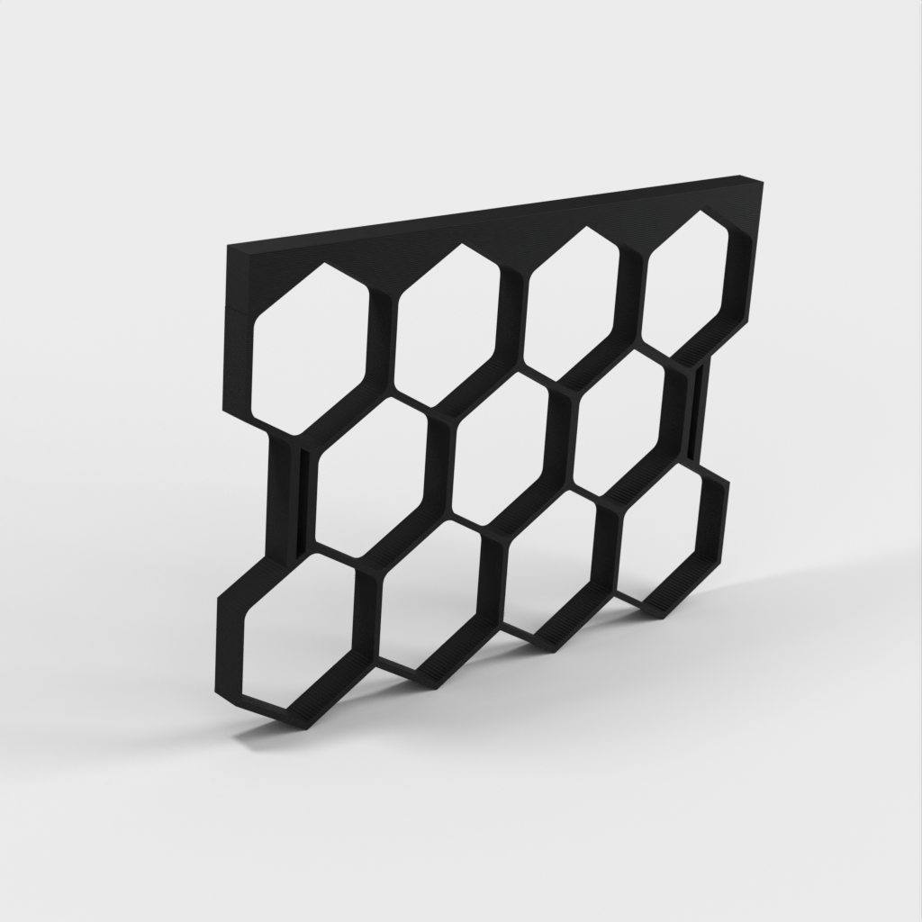 Αυτό είναι ένα εξαγωνικό ράφι μπαχαρικών που έχει σχεδιαστεί για να εξοικονομεί χώρο στο ράφι, στοιβάζοντας τα δοχεία μπαχαρικών κάθετα. Είναι επίσης πιο εύκολο να βρείτε ένα συγκεκριμένο μπαχαρικό αν γράψετε το όνομα του μπαχαρικού στο καπάκι των δοχείων. Χρειάζεστε 2 βύσματα και 2 θήκες για μπαχαρικά3 κομμάτια για να συναρμολογήσετε αυτό το ράφι.