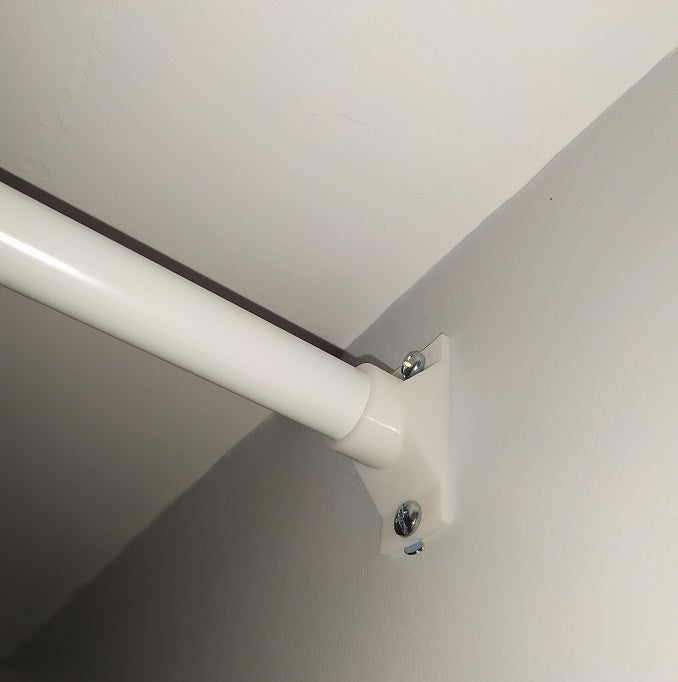 Η βάση είναι σχεδιασμένη για κουρτινόξυλα Ikea RÄCKA. Αυτό σημαίνει ότι μπορείτε να ρυθμίσετε το κουρτινόξυλο σας χωρίς να χρειάζεστε βίδες. Απλώς τοποθετήστε τη ράβδο στη θήκη και είναι σταθερά στη θέση της.