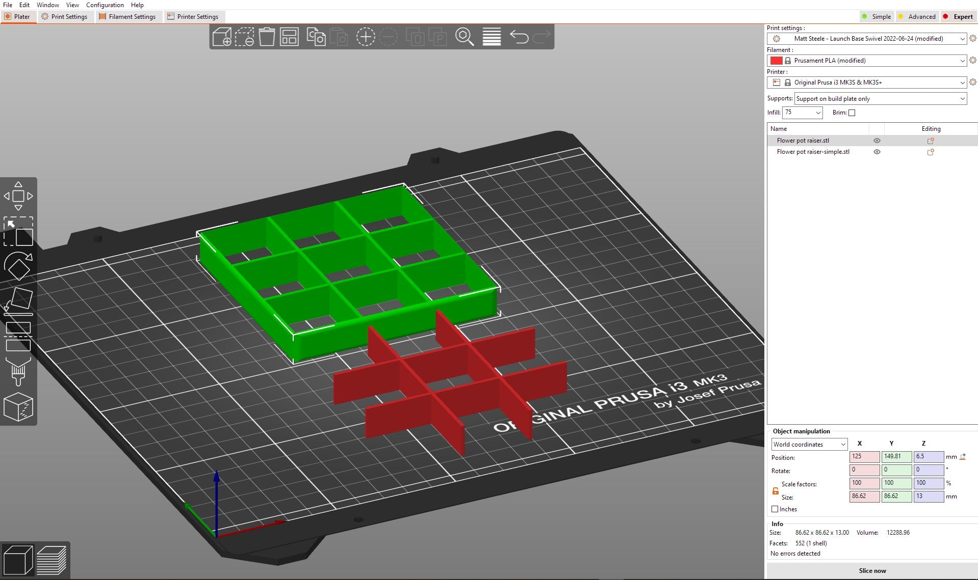 Το Plant Pot Raiser είναι μια απλή έκδοση χωρίς το συνηθισμένο όριο, αλλά λειτουργεί εξίσου αποτελεσματικά. Με αυτό το προϊόν, μπορείτε εύκολα να προσαρμόσετε τις διαστάσεις Χ, Υ και Ζ ώστε να ταιριάζει στο δοχείο του δέντρου σας και να καθορίσετε πόσο ψηλά θέλετε να ανεβάσετε τη γλάστρα των φυτών σας. Δεν υπάρχουν δομές στήριξης, χρησιμοποιήστε 4 ή 5 περιμετρικά για να αποφύγετε τον θόρυβο πλήρωσης. Ύψος στρώματος 0,2 mm ή περισσότερο - κανείς δεν θα το δει στο δοχείο γλάστρας.