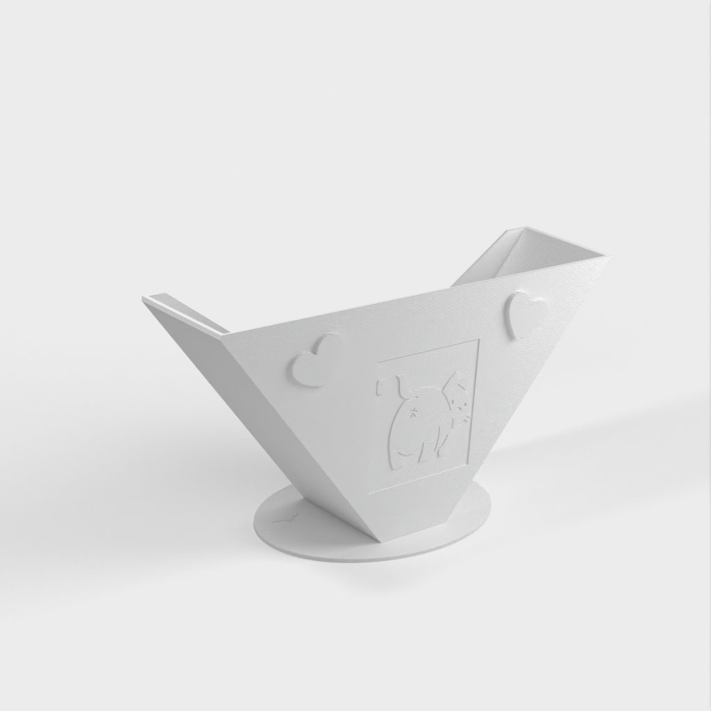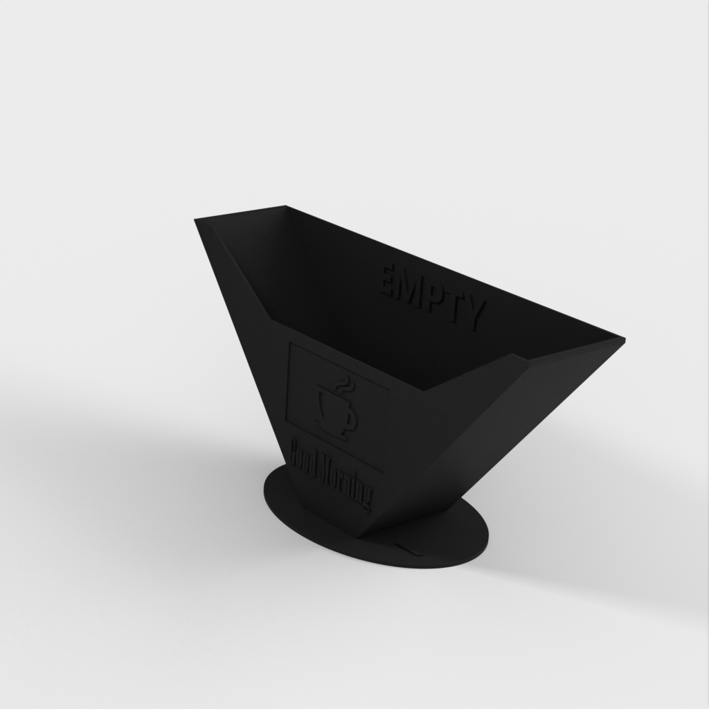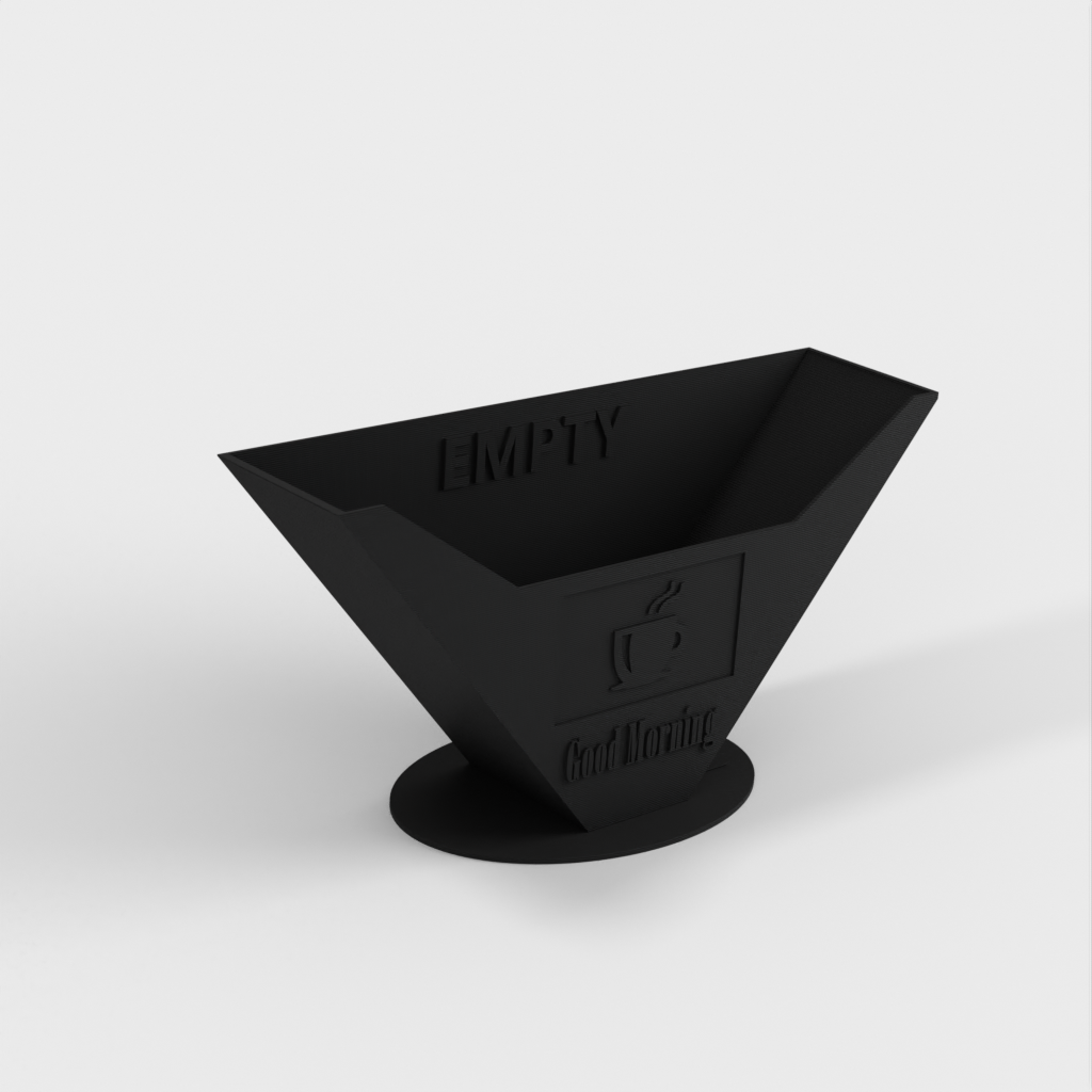 Αυτή είναι μια βάση φίλτρου καφέ που έφτιαξα σε 3D builder. Έχει σχεδιαστεί για να κρατά το φίλτρο του καφέ σας στη θέση του ενώ φτιάχνετε τον πρωινό σας καφέ. Είναι πολύ εύκολο στη χρήση και ταιριάζει στα περισσότερα τυπικά φίλτρα καφέ.