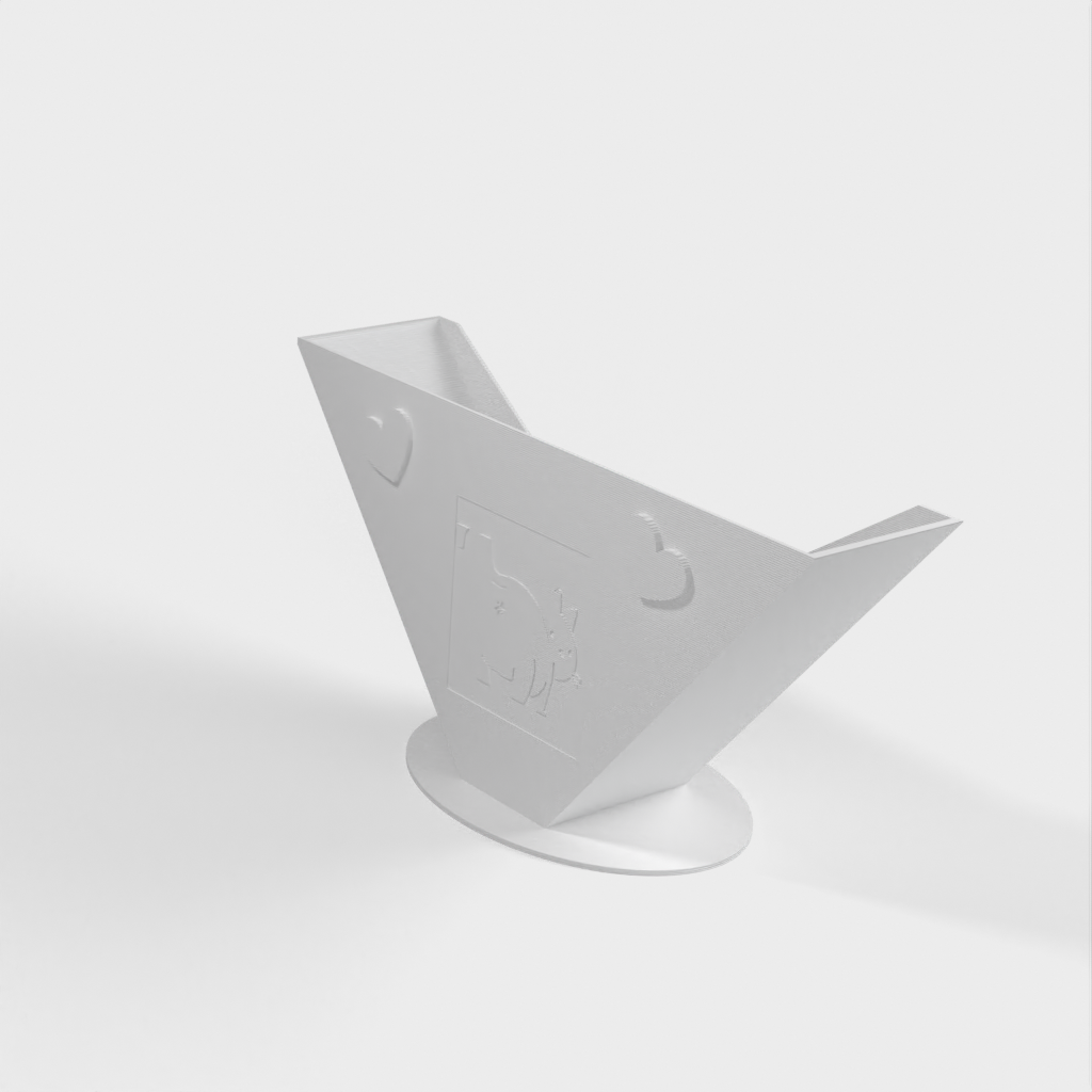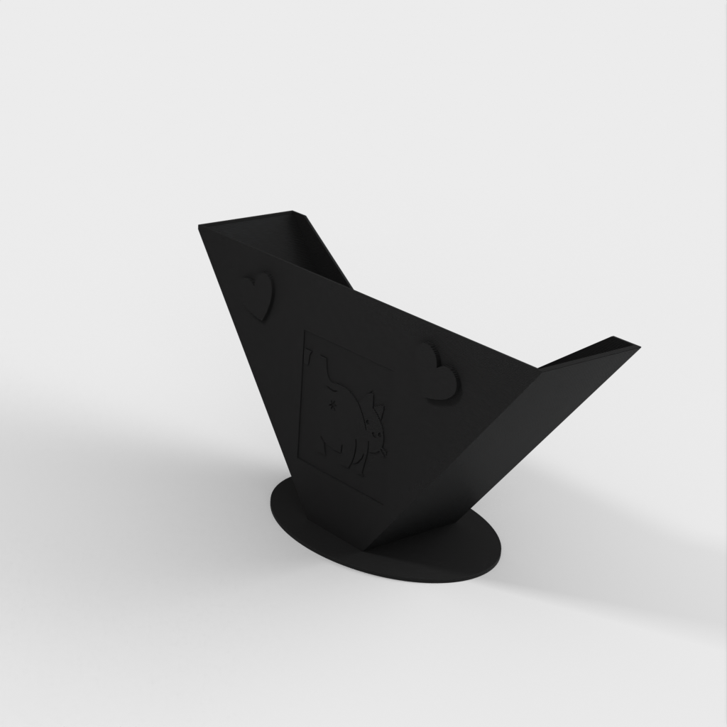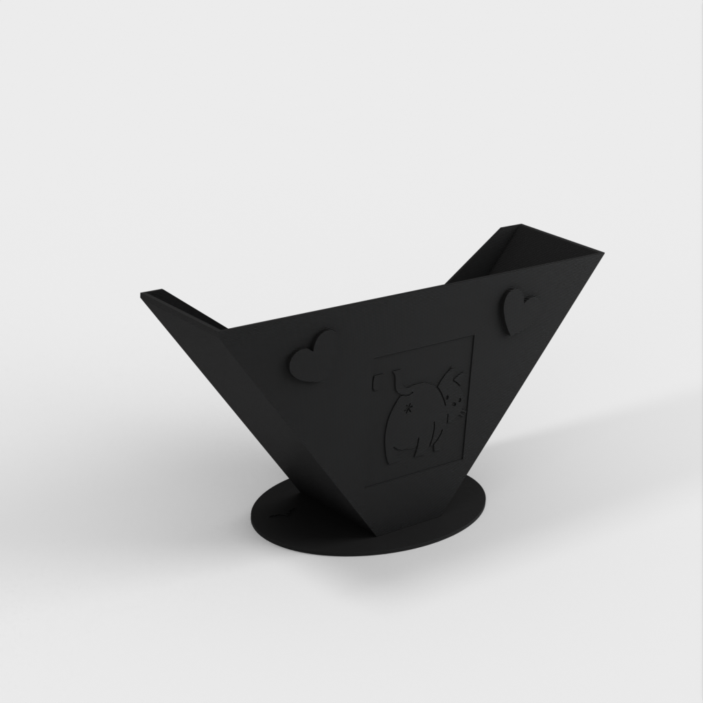 Αυτή είναι μια βάση φίλτρου καφέ που έφτιαξα σε 3D builder. Έχει σχεδιαστεί για να κρατά το φίλτρο του καφέ σας στη θέση του ενώ φτιάχνετε τον πρωινό σας καφέ. Είναι πολύ εύκολο στη χρήση και ταιριάζει στα περισσότερα τυπικά φίλτρα καφέ.