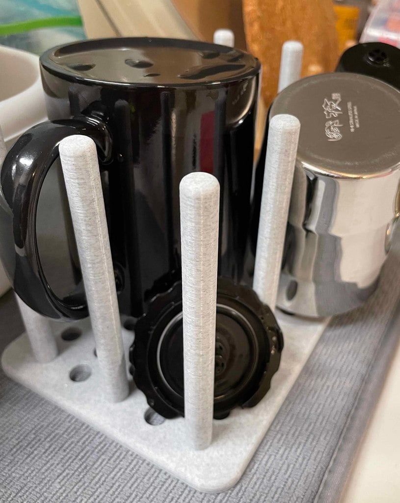 Αυτή η βάση στεγνώματος φλιτζανιών έχει σχεδιαστεί για να παρέχει μια πρακτική λύση για το γρήγορο στέγνωμα φλιτζανιών και ποτηριών. Με τη σταθερή κατασκευή του, μπορεί εύκολα να τοποθετηθεί στον πάγκο της κουζίνας, όπου συγκρατεί τα φλιτζάνια σας με ασφάλεια και ξεχωριστά για να εξασφαλίσει αποτελεσματική κυκλοφορία του αέρα. Η βάση στεγνώματος είναι ιδανική τόσο για γυάλινα όσο και για κεραμικά φλιτζάνια και βοηθά στην αποφυγή πιτσιλισμάτων νερού και λεκέδων στο τραπέζι. Είτε μόλις πλύνατε τα πιάτα είτε απλά θέλετε έναν βέλτιστο τρόπο αποθήκευσης των φλιτζανιών σας, αυτή η σχάρα στεγνώματος είναι μια τέλεια προσθήκη στην κουζίνα σας. Όχι μόνο διατηρεί την κουζίνα σας οργανωμένη, αλλά συμβάλλει επίσης σε μια ταχύτερη διαδικασία στεγνώματος των αγαπημένων σας φλιτζανιών.