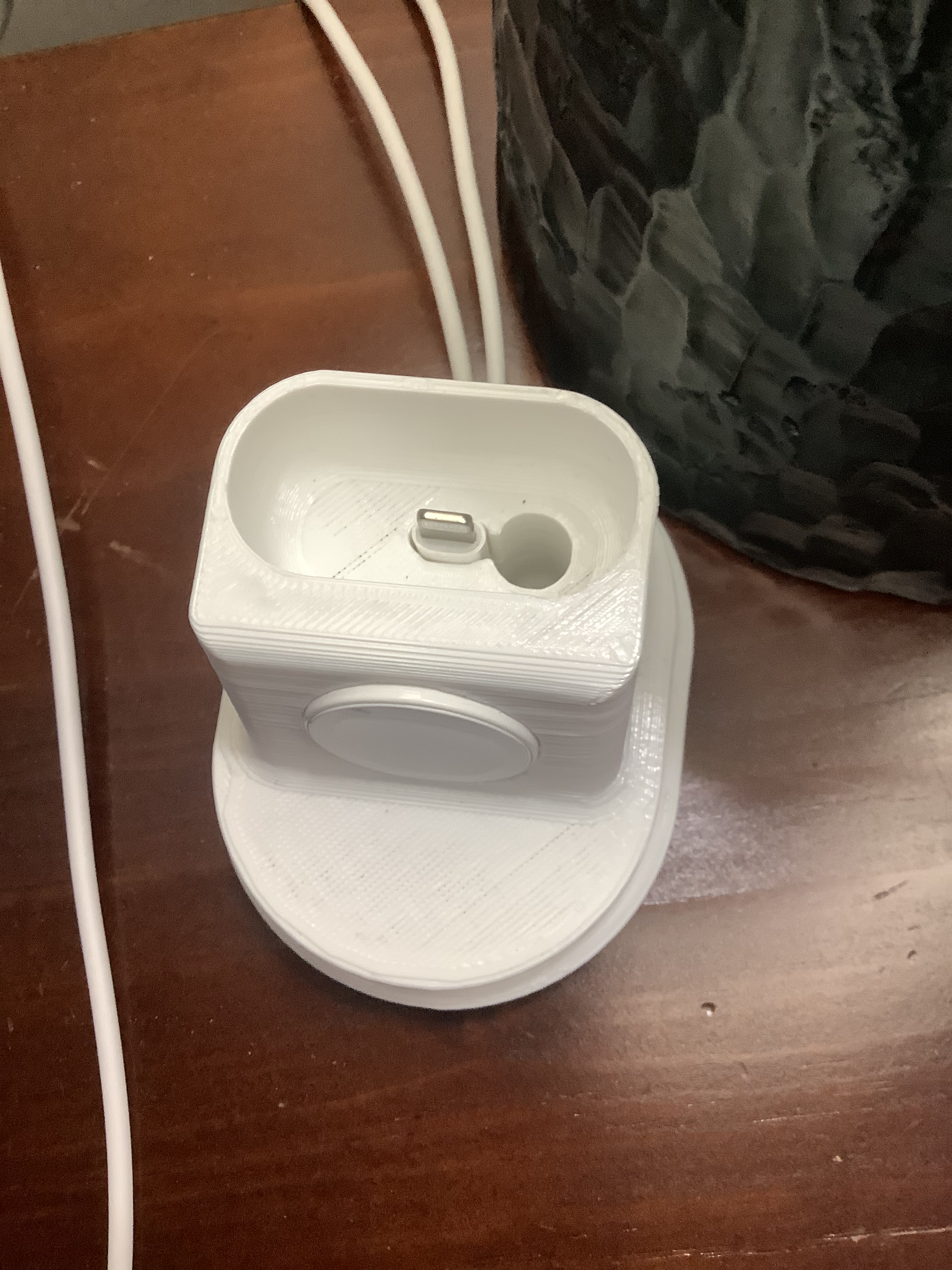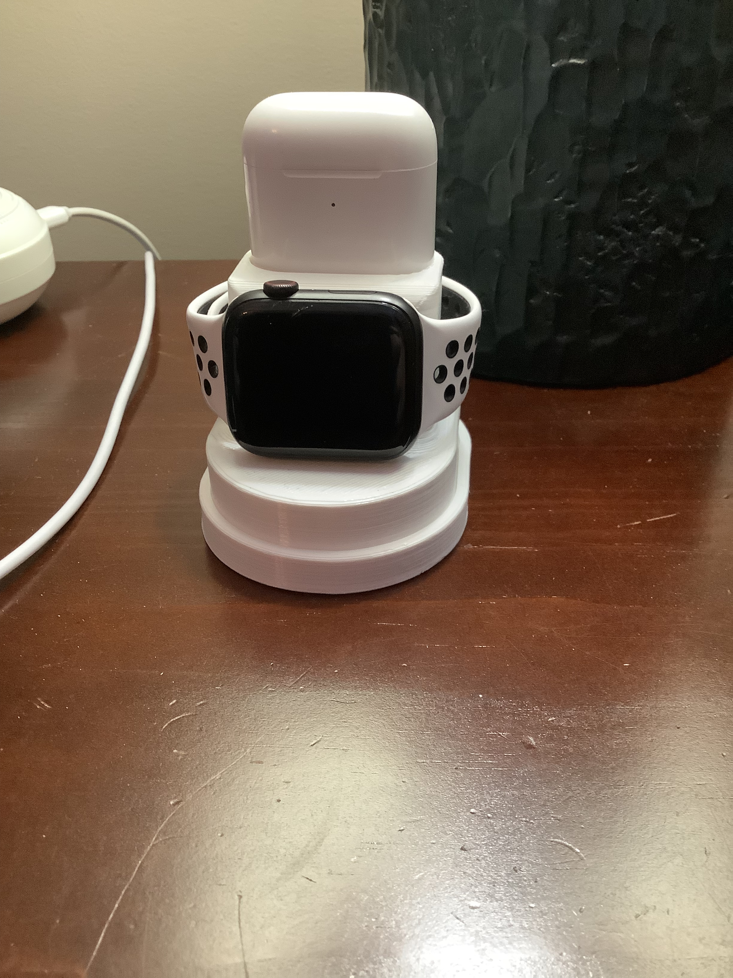 Αποβάθρα φόρτισης Apple Watch και Airpod. Αυτό το μοντέλο είναι προσαρμοσμένο ώστε να ταιριάζει απόλυτα τόσο στους φορτιστές Apple Watch όσο και στους φορτιστές Airpod. Η βάση φόρτισης διατηρεί τις συσκευές σας με ασφάλεια στη θέση τους κατά τη φόρτιση και διευκολύνει την παρακολούθηση και των δύο ταυτόχρονα. Η συναρμολόγηση είναι απλή και ξεκάθαρη.