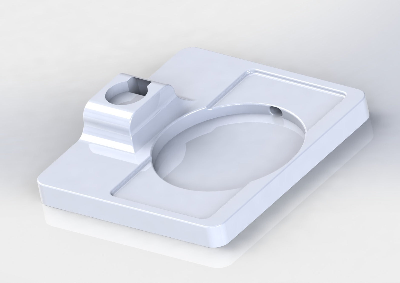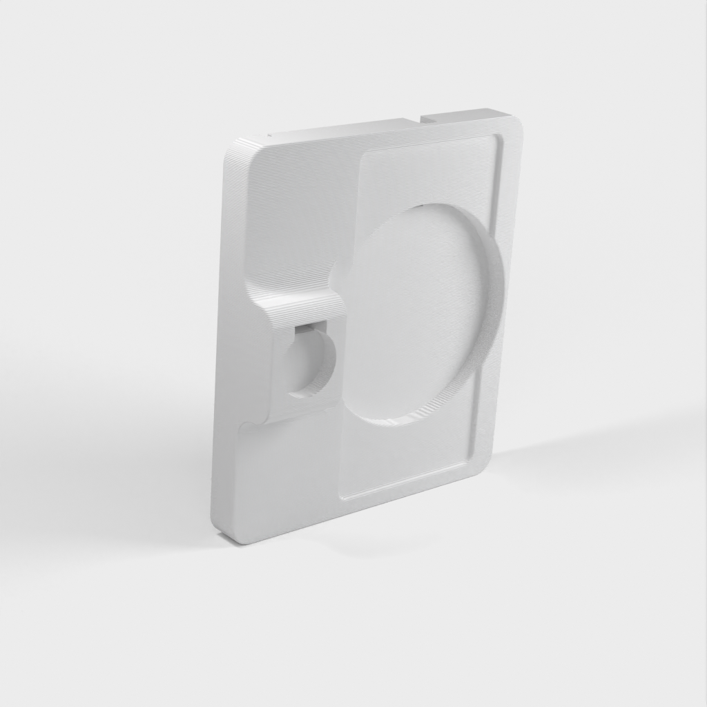 Αυτό το προϊόν μπορεί να χρησιμοποιηθεί ως σταθμός σύνδεσης για το φορτιστή Apple Watch, σε συνδυασμό με έναν ασύρματο φορτιστή Qi. Υποστηρίζει φορτιστές με διάμετρο έως 100 mm και είναι εξοπλισμένος με ενσωματωμένους οδηγούς καλωδίων. Πρέπει να εκτυπώνεται με στήριξη λόγω προεξοχής στην περιοχή των οδηγών καλωδίων.