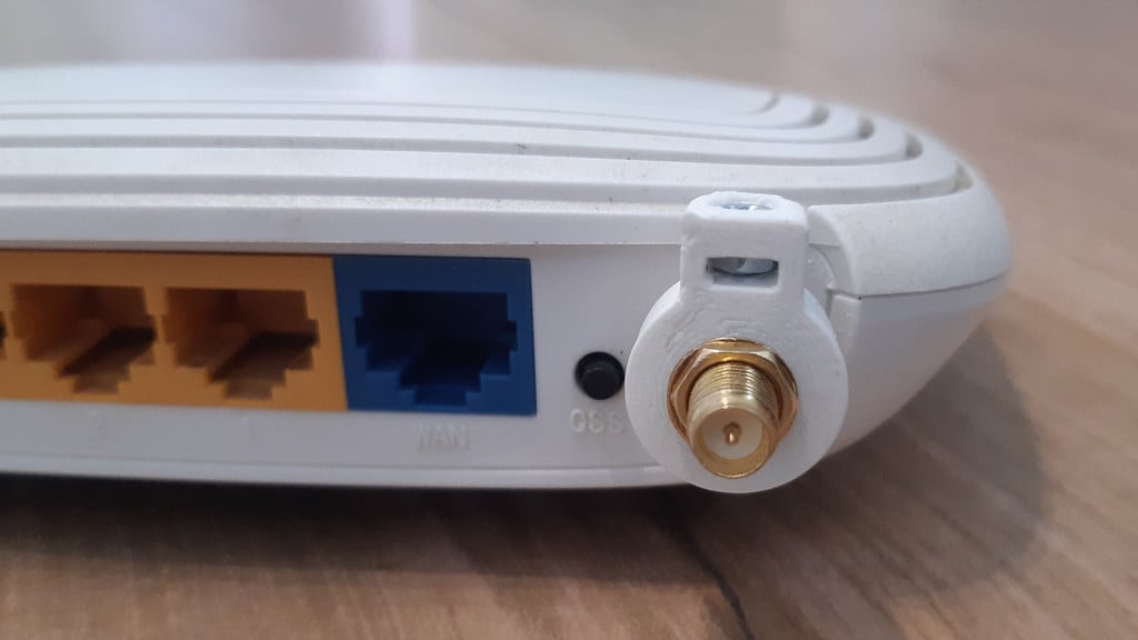 Αυτή είναι μια υποδοχή για βύσματα RP-SMA για δρομολογητές TP-Link (TL-WR841N, TL-WR740N). Η θήκη χρησιμοποιείται για τη μετατροπή ενός δρομολογητή με σταθερή κεραία σε αποσπώμενη κεραία. Έχει σχεδιαστεί για να χρησιμοποιεί ένα μπουλόνι κωνικής κεφαλής M2,5 για να βιδώνει το στήριγμα στη θέση του.