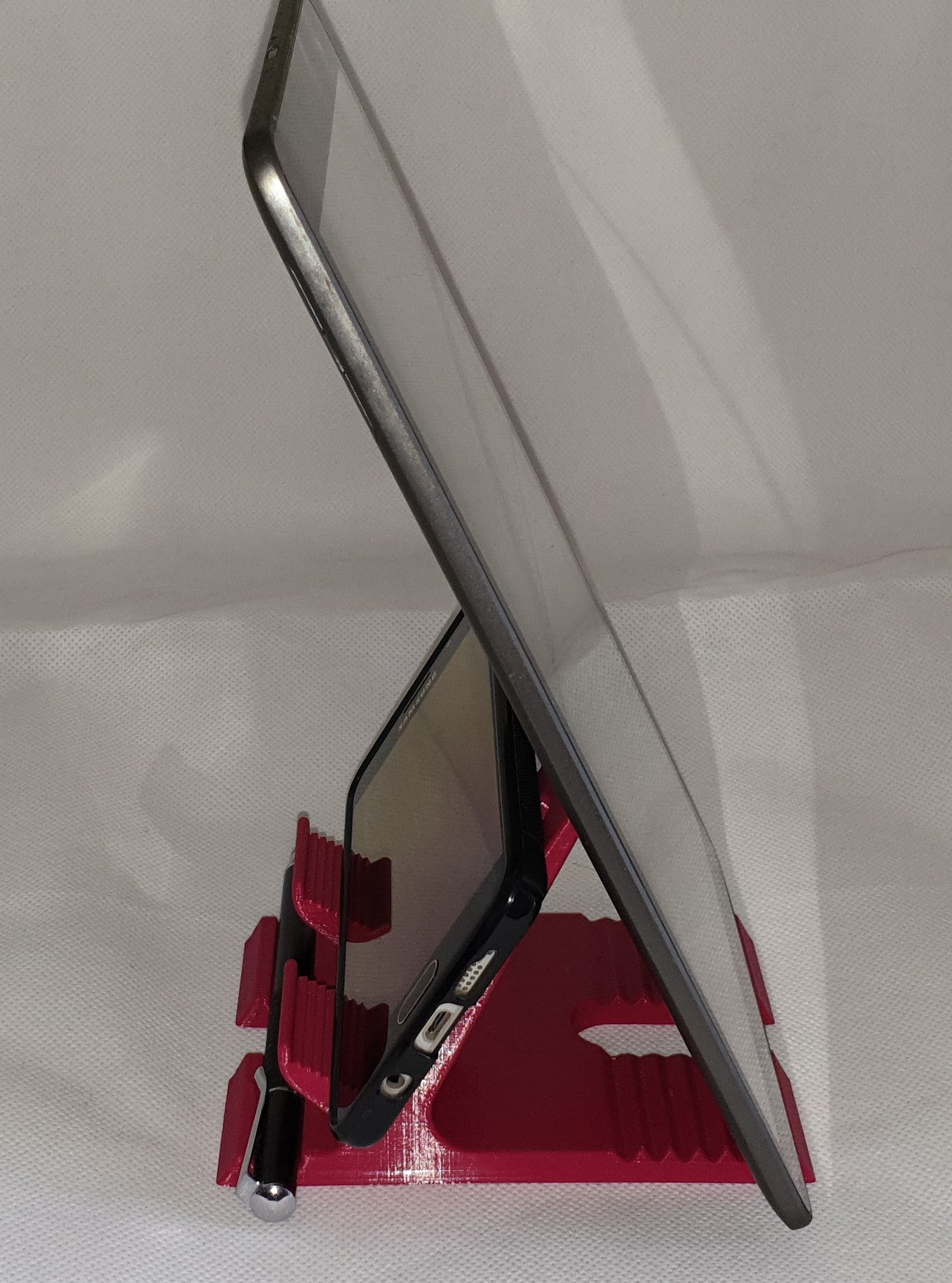 Αυτό είναι ένα περίπτερο για smartphones. Με αυτήν μπορείτε εύκολα να τοποθετήσετε το τηλέφωνό σας σε ένα γραφείο ή σε οποιαδήποτε επίπεδη επιφάνεια για εύκολη λειτουργία και προβολή. Είναι ιδανικό για την παρακολούθηση βίντεο, την ανάγνωση, την πραγματοποίηση βιντεοκλήσεων ή ακόμα και ως απλή βάση φόρτισης.