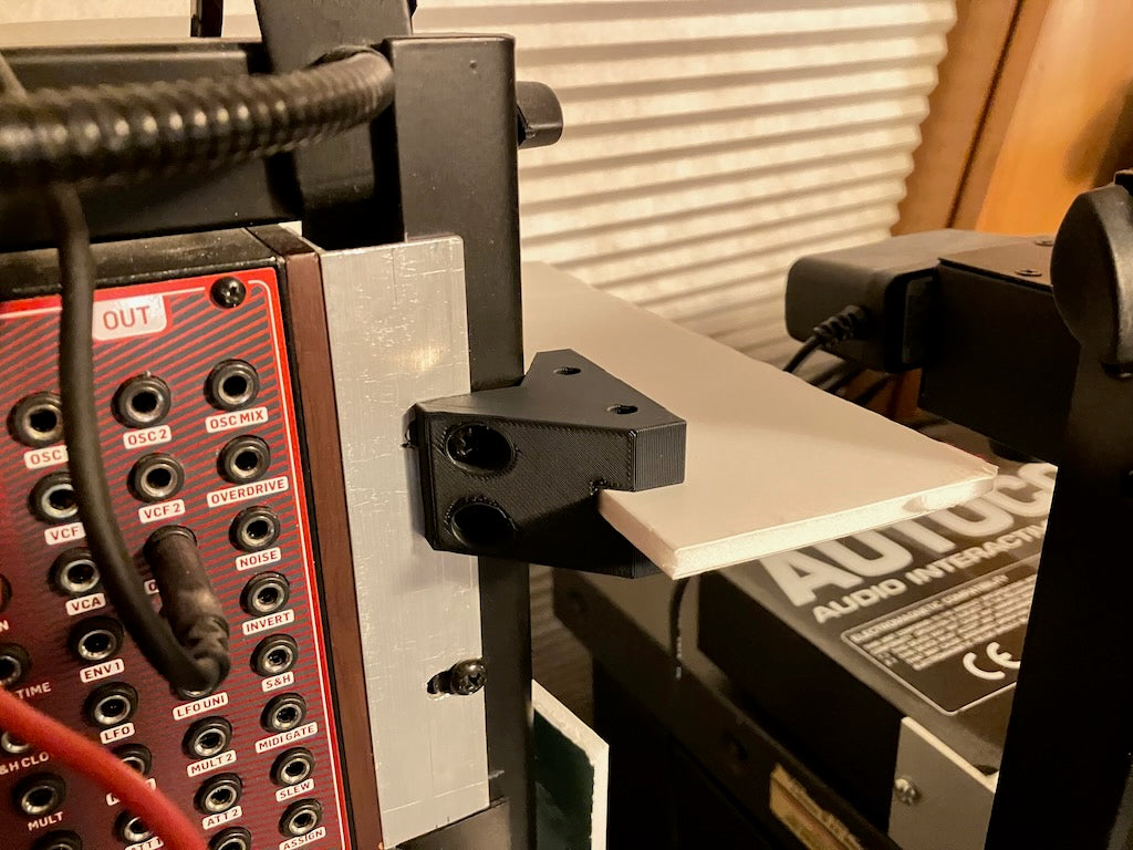 Για να στερεώσετε το ράφι από επίπεδο υλικό, μπορείτε να χρησιμοποιήσετε κόλλα, βίδες ή απλά να ανοίξετε τρύπες στο υλικό σύμφωνα με το σχέδιο στο στήριγμα και να εισάγετε πασσάλους περίπου 5 mm ως πείρους. Το πλάτος του υλικού του ραφιού σας θα πρέπει να είναι περίπου 428mm για ένα ράφι 19', αλλά τα ράφια είναι πασίγνωστα ευμετάβλητα, οπότε μετρήστε αφού εγκαταστήσετε τα στηρίγματα ή κόψτε περισσότερο και κόψτε το όσο χρειάζεται.