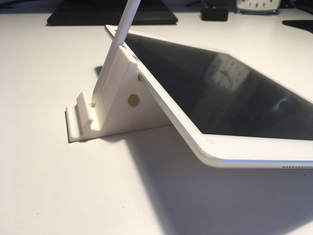 Βάση iPad 2 κατευθύνσεων με υποδοχή για το Apple Pencil και το καπάκι του. Η βάση μπορεί να κρατήσει το iPad σας σε μια άνετη θέση για να παρακολουθείτε βίντεο, ενώ η θήκη για το Apple Pencil διατηρεί το μολύβι και το καπάκι σας οργανωμένα και σε κοντινή απόσταση.