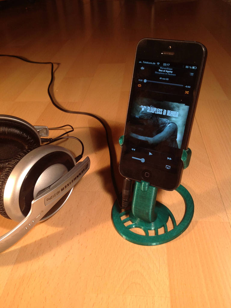 Μια όμορφη βάση για το iPhone 5 με αρκετό χώρο για να συνδέσετε ένα καλώδιο ήχου.