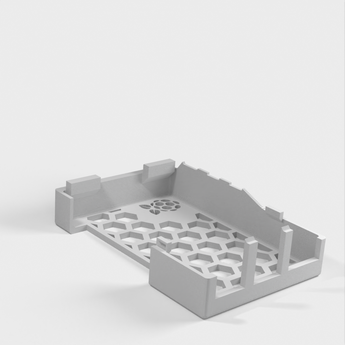 Ένα περίβλημα Raspberry Pi 5 με εκτεθειμένους ακροδέκτες GPIO και εξαγωνικές οπές για καλύτερη ψύξη. Αν έχετε δίσκο ψύξης και επίσημο ανεμιστήρα παρόμοιο με αυτόν της εικόνας, είστε καλύτερα με το 'Pins-Top-Hexed-With-Logo-HeatSink-Cutoff.stl'.