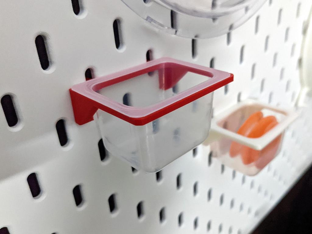 Αυτή είναι μια ελαφριά θήκη για δοχεία που ταιριάζει στον κρεμαστό πίνακα IKEA SKÅDIS. Είναι ειδικά σχεδιασμένη για να συγκρατεί γαλακτοκομικά προϊόντα, όπως τα κυπελλάκια για κουάρκ 'Leckermäulchen'. Αυτό το προϊόν περιλαμβάνει το αρχείο OpenSCAD, ώστε να μπορείτε να κάνετε προσαρμογές αν χρειαστεί.