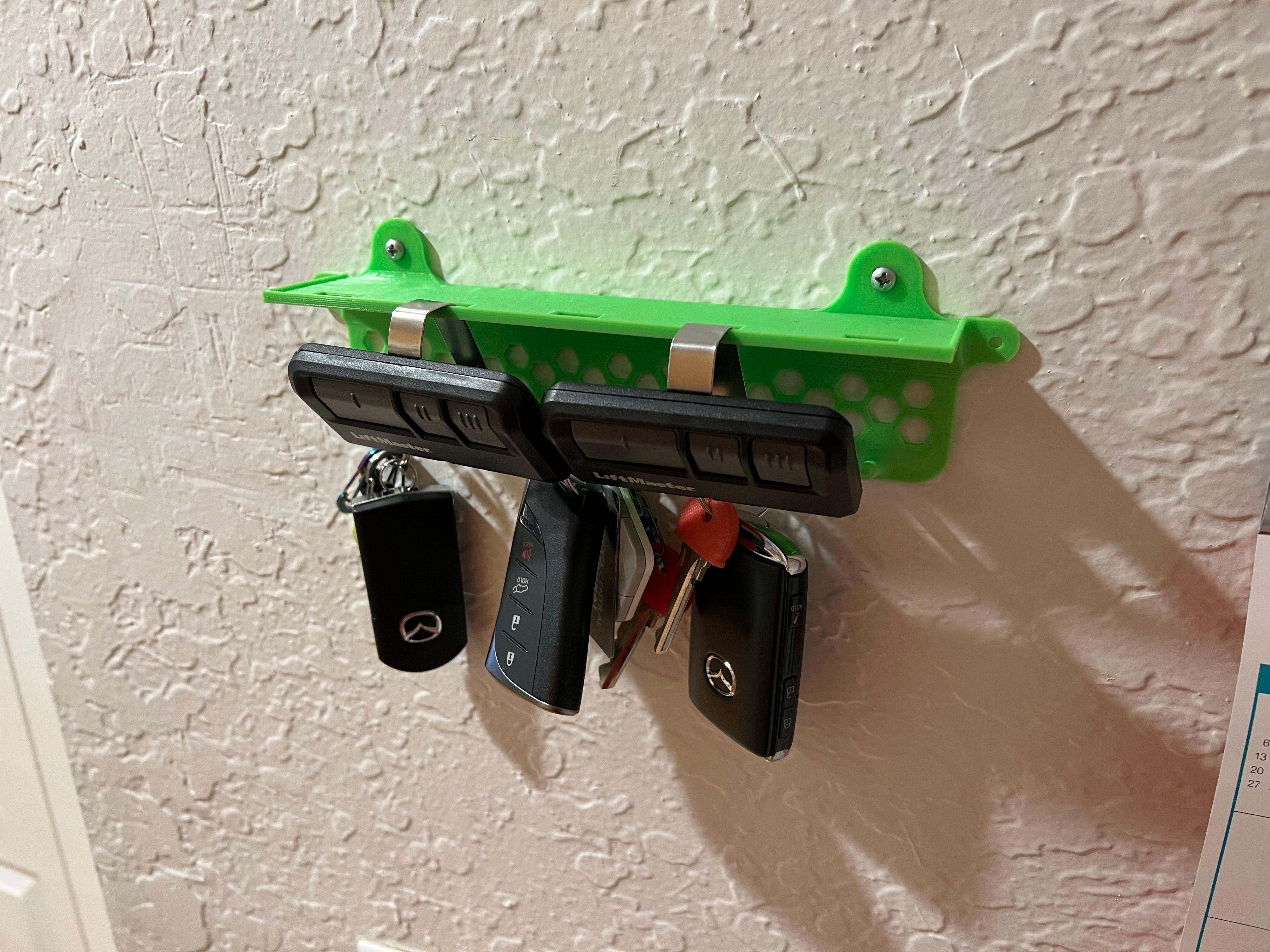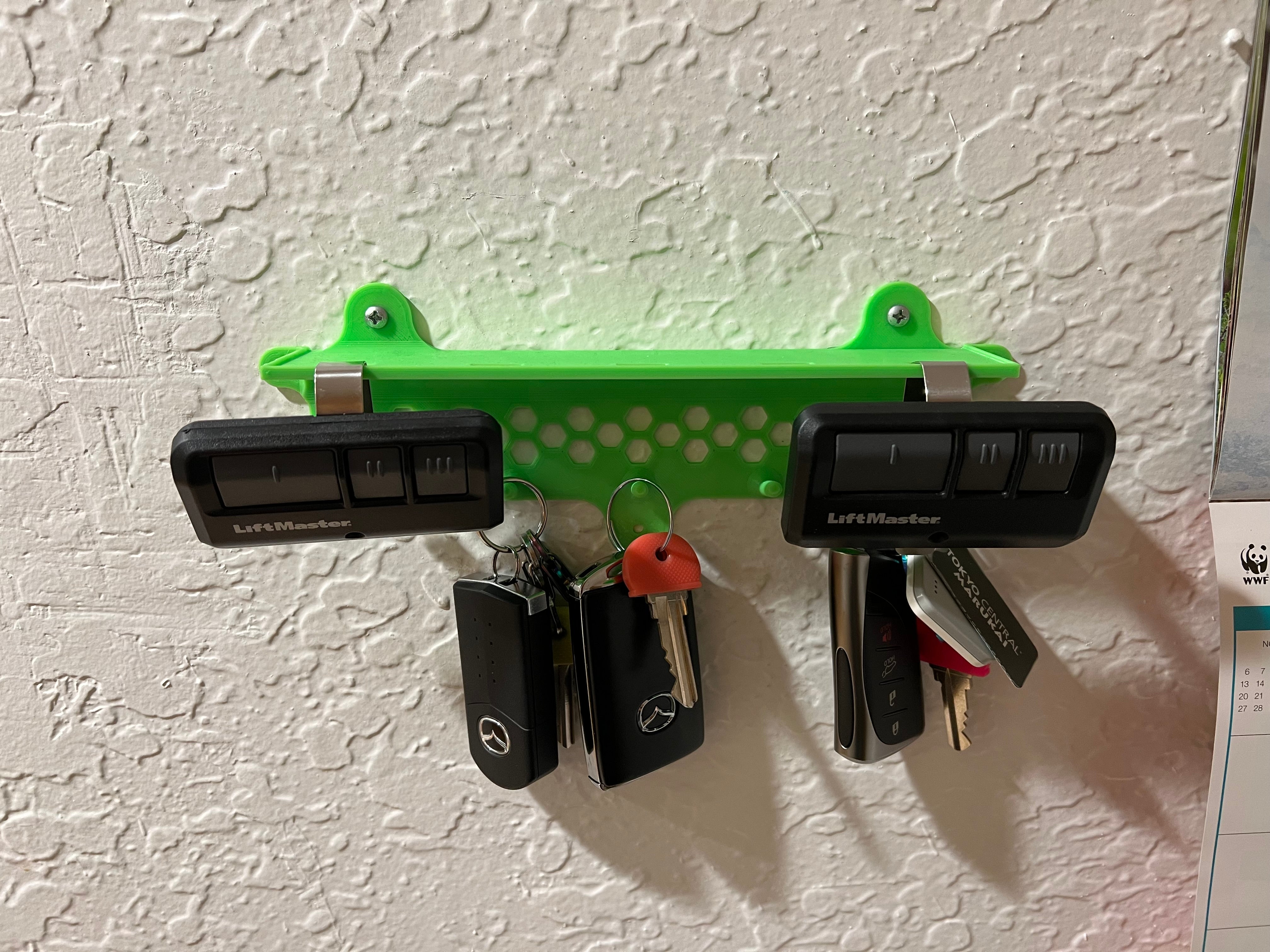 Η κλειδοθήκη περιλαμβάνει άγκιστρα για κλειδιά και συγκεκριμένες εγκοπές στο ράφι, οι οποίες είναι κατάλληλες για την αποθήκευση ανοιχτηριών γκαράζ. Το ράφι προσφέρει επιπλέον χώρο για μικροαντικείμενα όπως πορτοφόλι, γυαλιά ηλίου ή λίστες υποχρεώσεων - μια πρακτική λύση που διασφαλίζει ότι δεν θα ξεχάσετε σημαντικά αντικείμενα πριν φύγετε από το σπίτι.