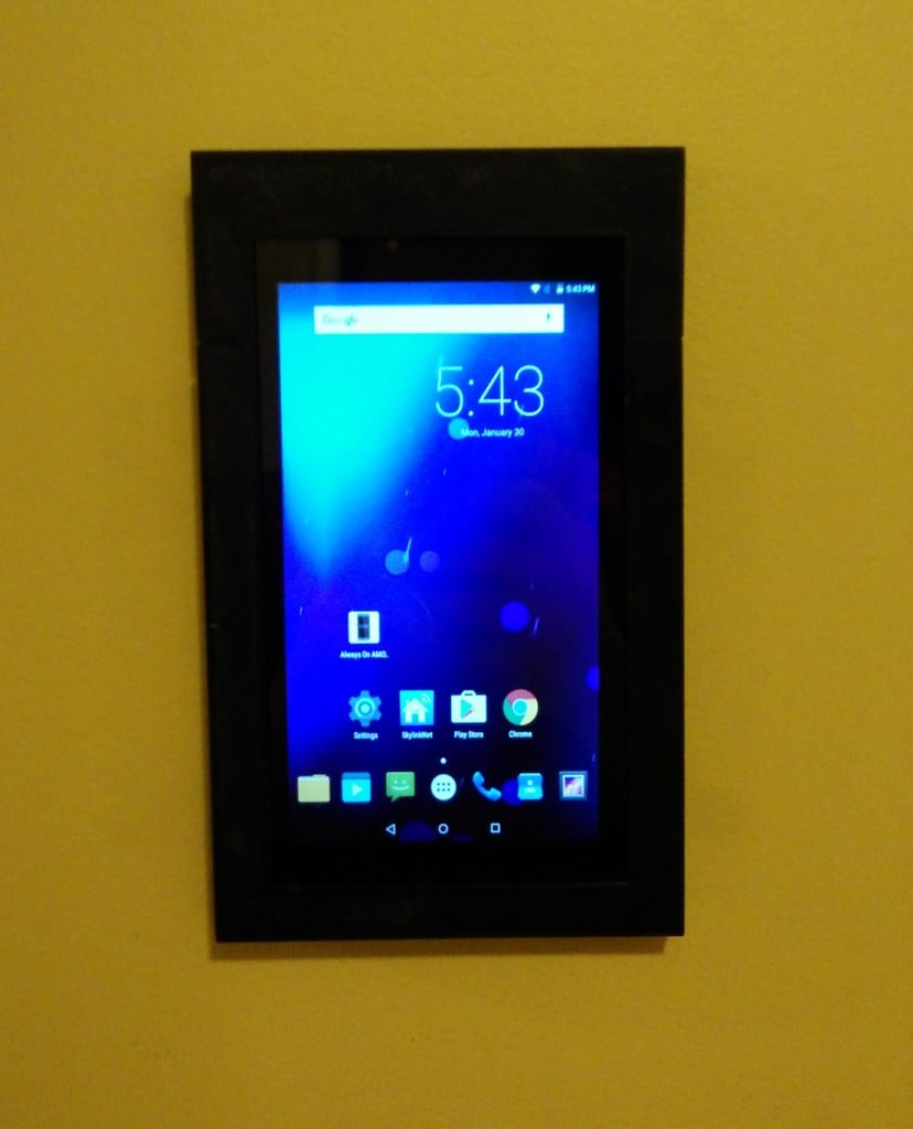 Αυτή είναι μια επιτοίχια βάση για tablet. Περιβάλλει και τις τέσσερις πλευρές και η επάνω πλευρά γλιστράει για πρόσβαση σε USB, κουμπί ενεργοποίησης/απενεργοποίησης κ.λπ. Έχω ένα tablet Android 7" που εκτελεί μια εφαρμογή που ονομάζεται "Always On" για να εμφανίζει συνεχώς την ώρα και το μόνο που έχω να κάνω είναι να πατήσω δύο φορές για να το ενεργοποιήσω.