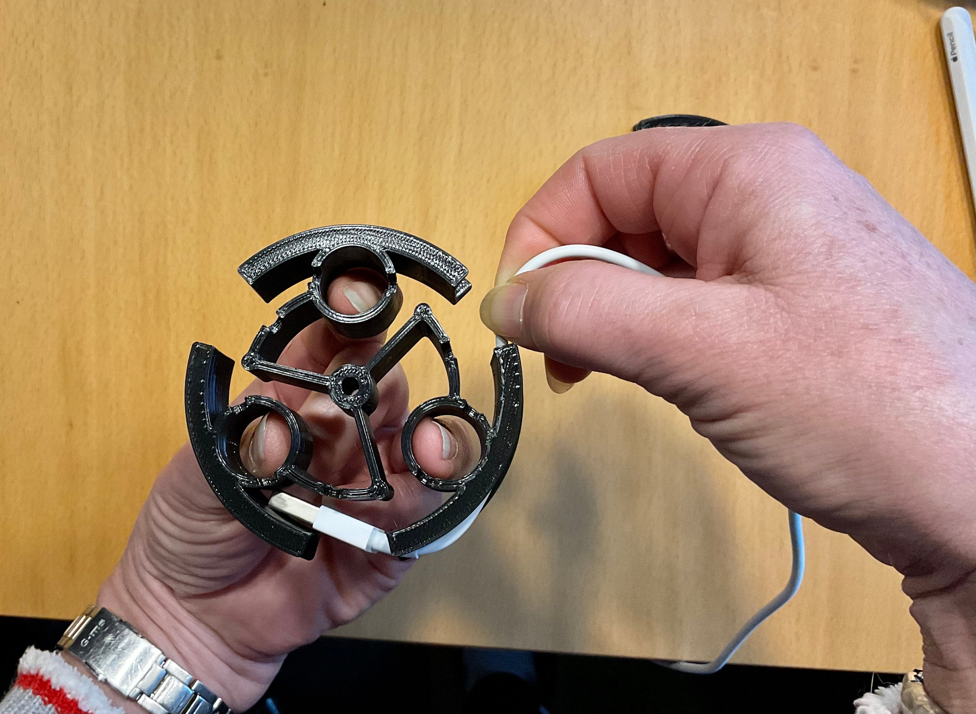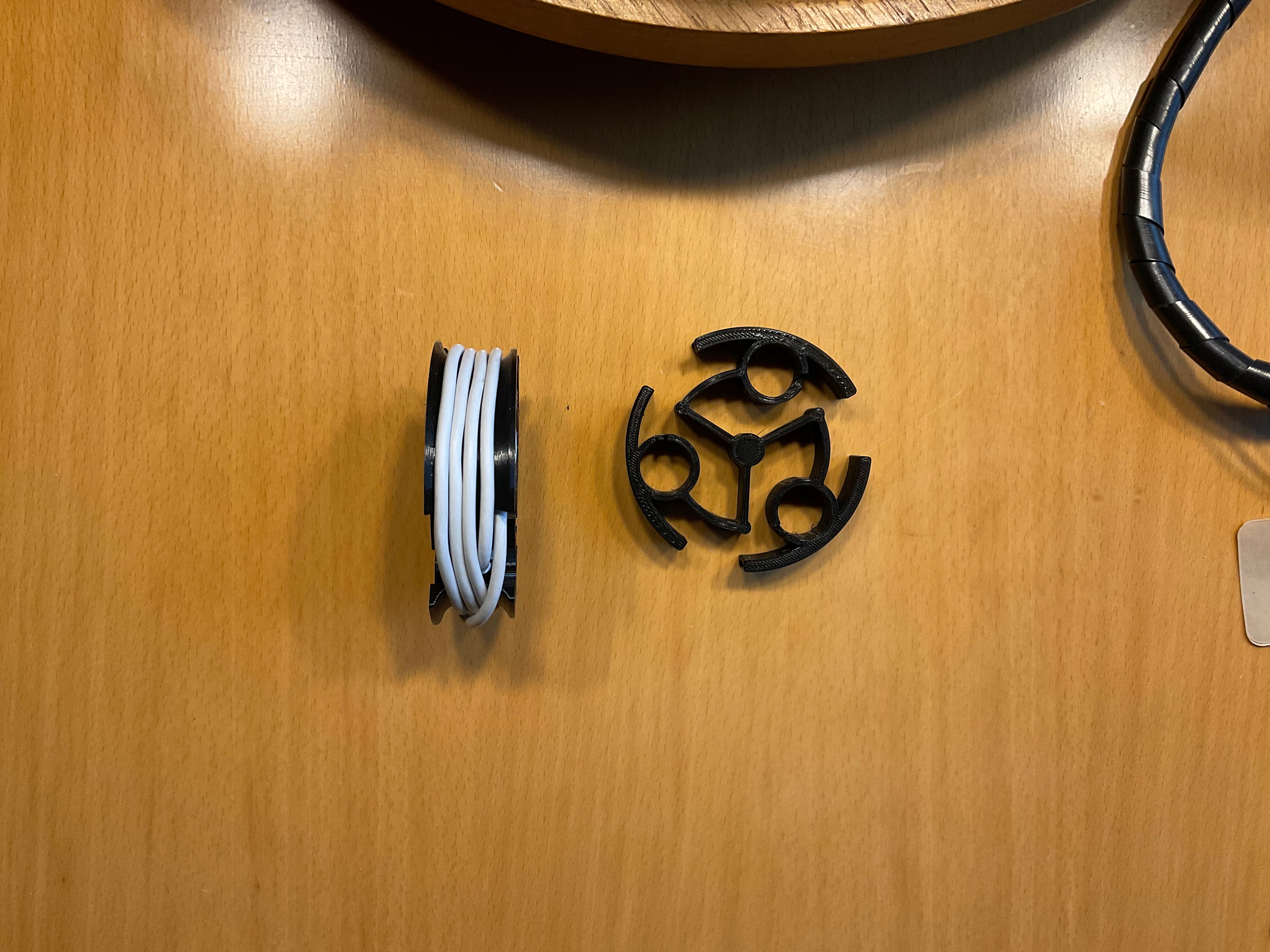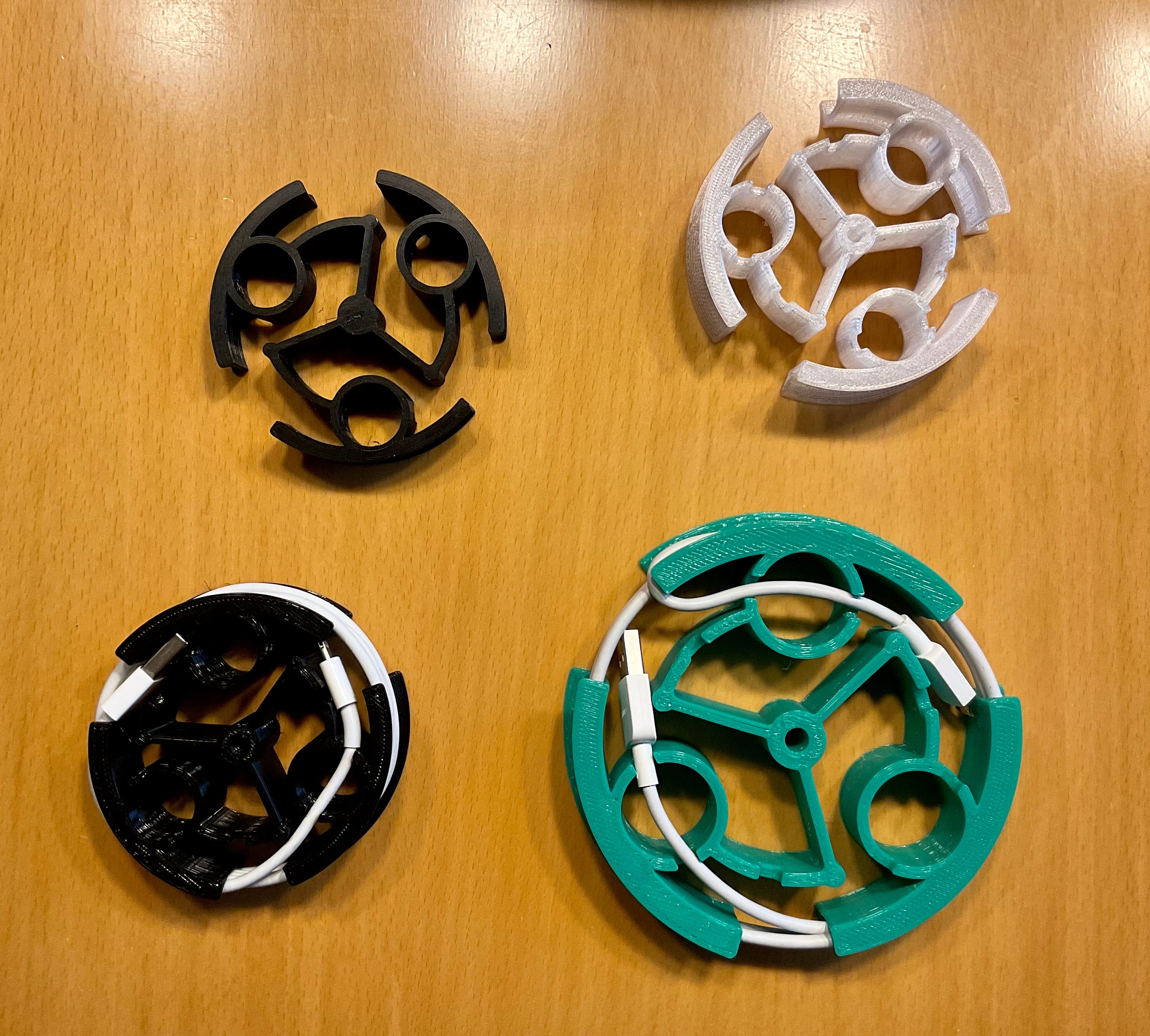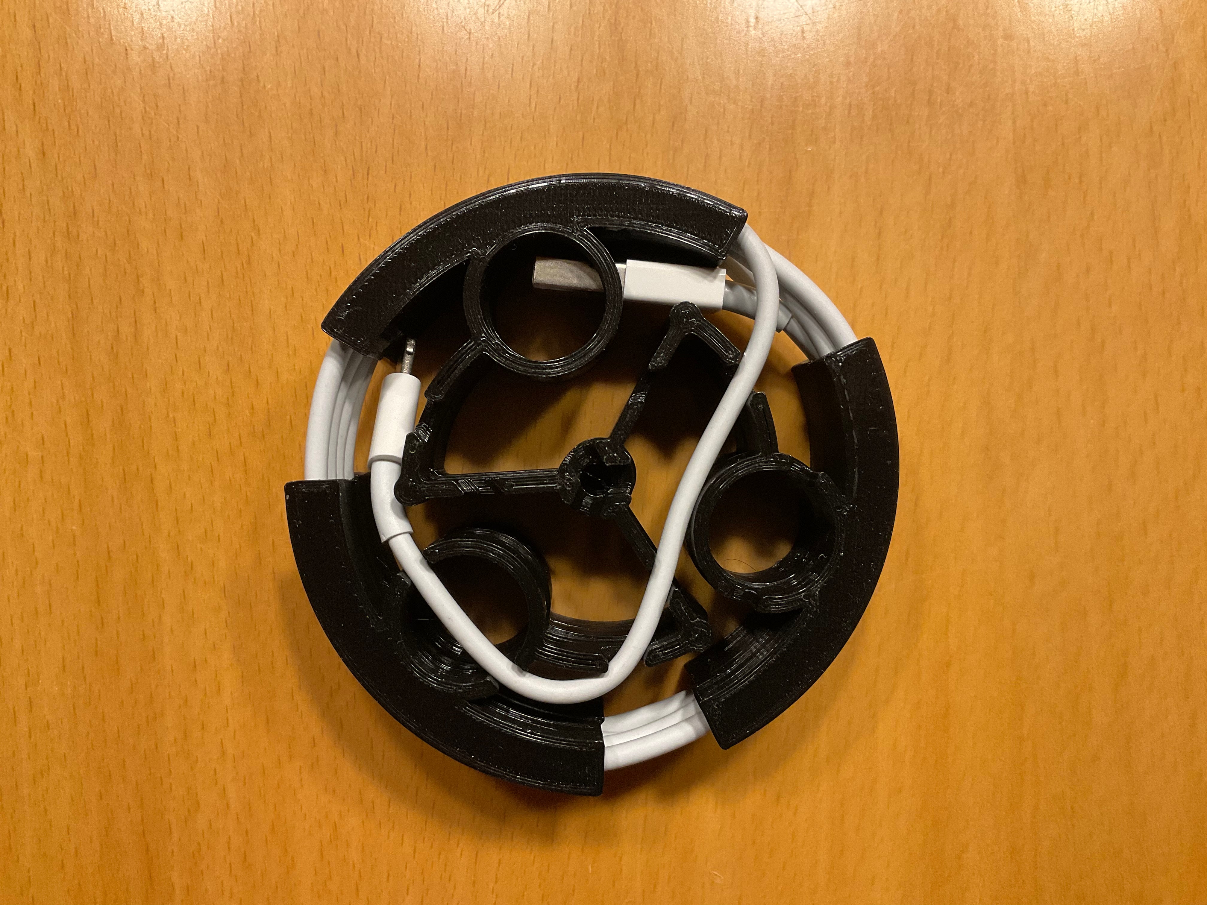 Αυτή είναι μια εύκαμπτη συσκευή οργάνωσης καλωδίων για καλώδια τηλεφώνου ή tablet. Έχει σχεδιαστεί για να εκτυπώνεται εύκολα ως ενιαία μονάδα χωρίς την ανάγκη στήριξης και μπορεί εύκολα να κλιμακωθεί ανάλογα με το μήκος και το πάχος του καλωδίου.