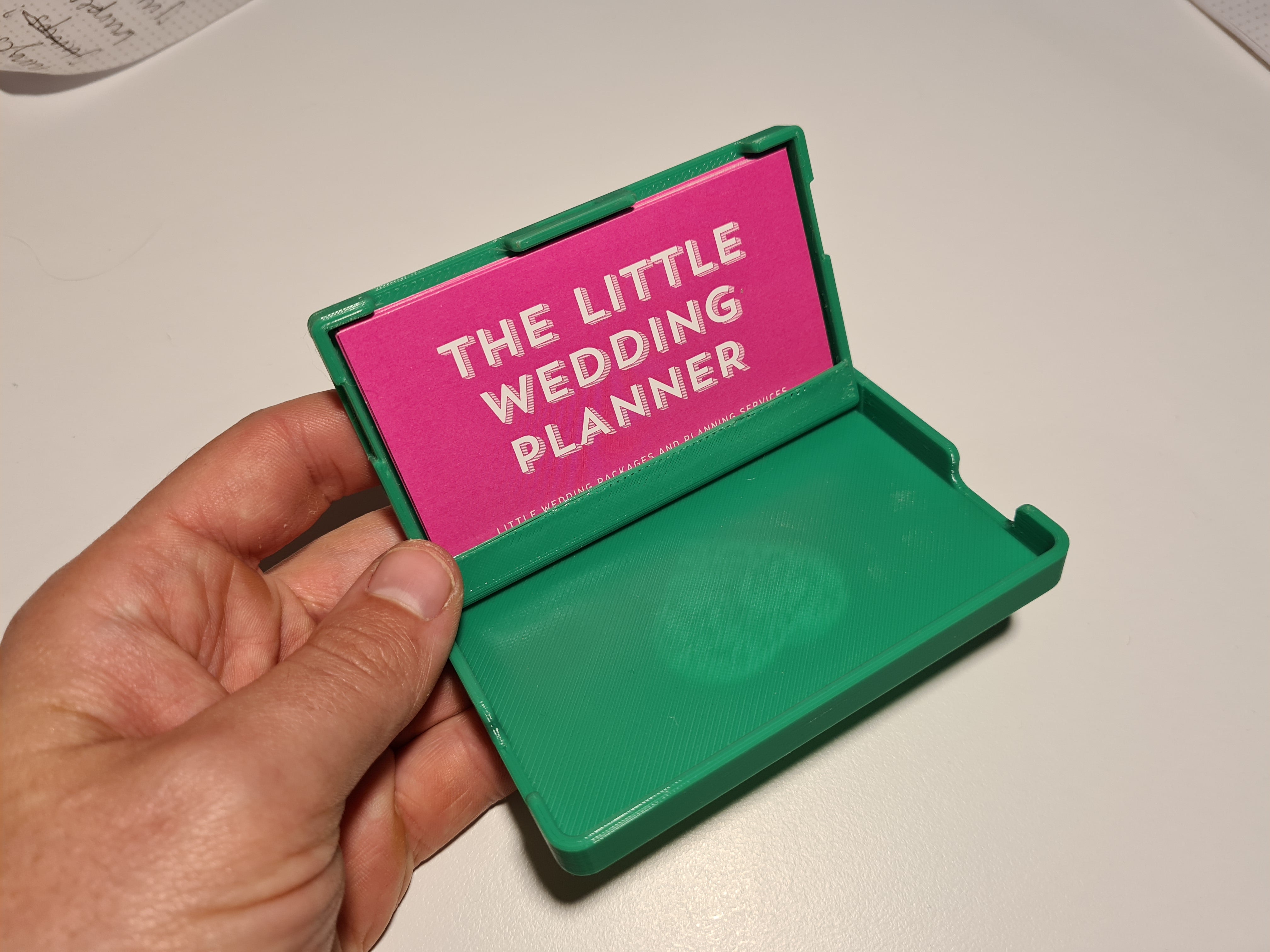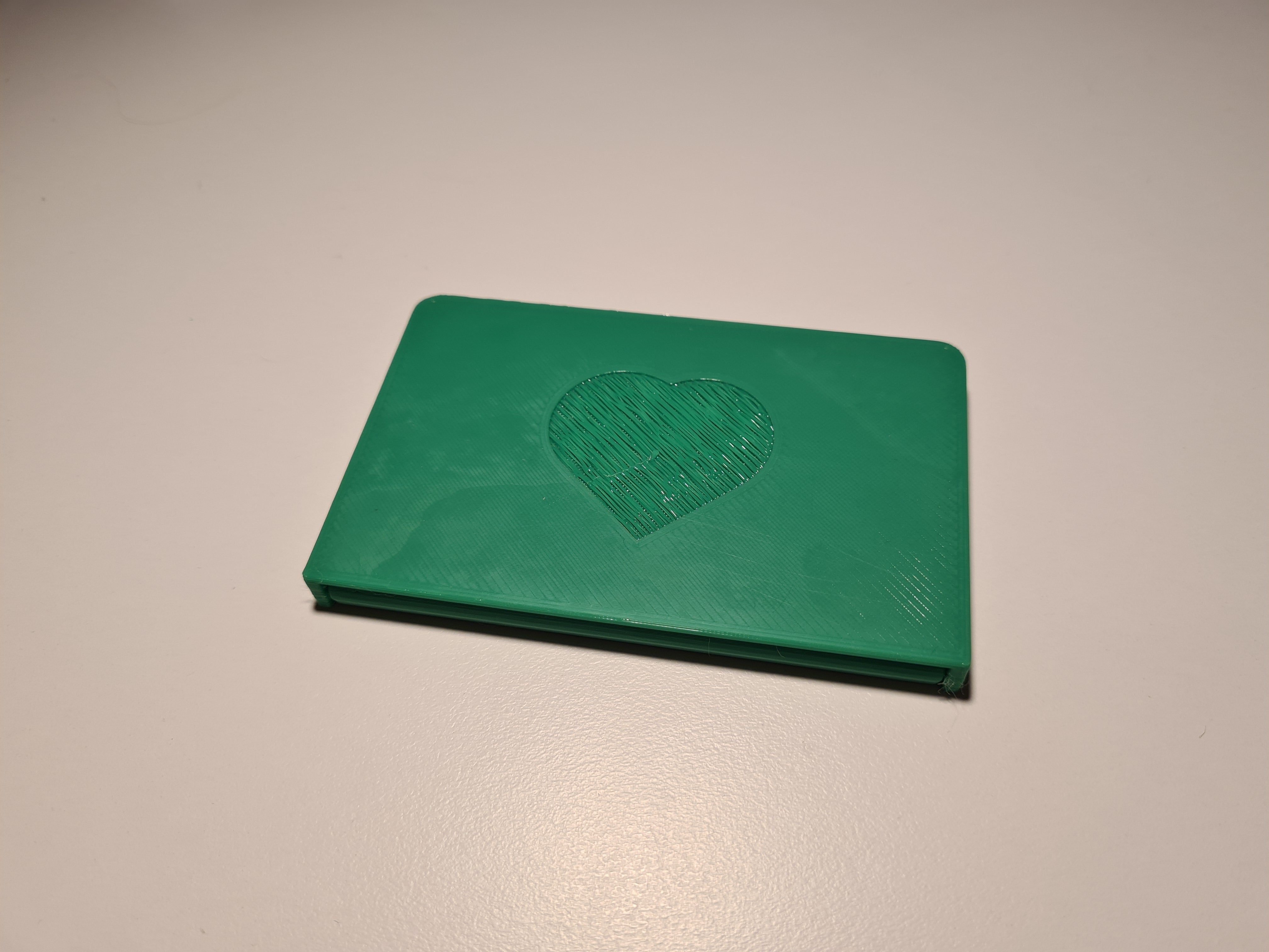 Αυτή η μικρή θήκη για επαγγελματικές κάρτες προστατεύει τις κάρτες σας στην τσέπη ή την τσάντα σας. Κλείνει με ένα κλικ, ώστε οι κάρτες σας να μην ξεχειλίζουν στην τσάντα σας. Ανοίγει σε στυλ κελύφους για να αποκαλύψει τις κάρτες. Περιλαμβάνονται μια έκδοση του καπακιού με μια καρδιά πάνω του και μια κενή έκδοση. Μπορείτε να βάλετε το λογότυπο ή το όνομά σας.
